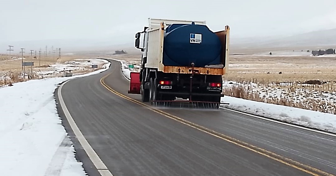 ⚠️ Chubut 24/06/20242do parte de rutas del Plan Invernal de Vialidad Nacional📸 Ruta N° 40 Gobernador Costa – Tecka: calzada húmeda, con sal; banquinas con nieve y barro. Camión regador del 13° Distrito de Vialidad Nacional realizan recorrido riego preventivo con solución salina en el tramo.❗️Transitar con precaución.➡️ Info del estado de rutas: https://bit.ly/3cXG77F