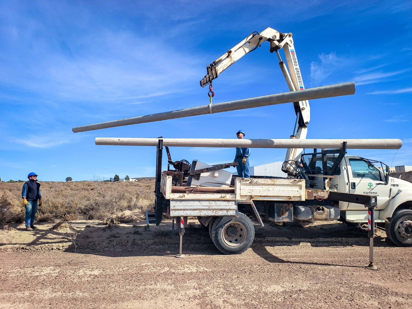 En la mañana de hoy, nuestro personal de Energía llevó adelante la instalación de dos nuevas columnas de hormigón, sobre la calle Ángel Timinieri en inmediaciones del Parque Industrial Pesquero. Luego de realizadas las obras de infraestructura y complementarias, se llevará adelante el montaje de nuevas redes aéreas de baja tensión, con el fin de ampliar la capacidad de entrega del suministro en la zona de influencia.