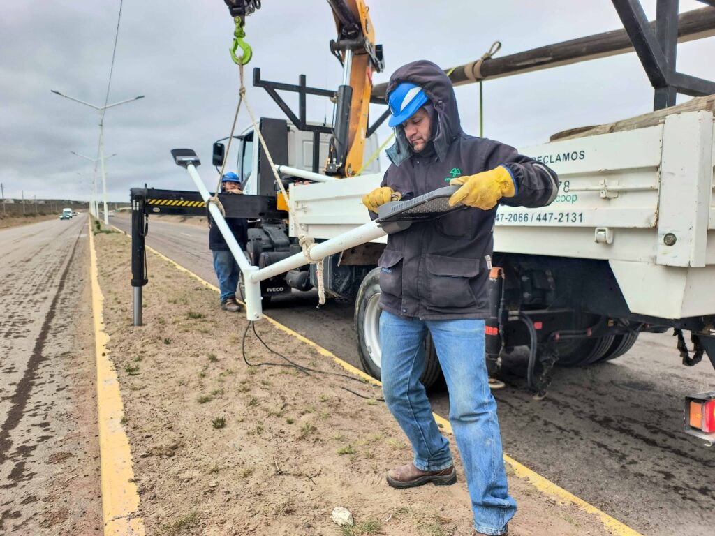 En esta oportunidad, se colocaron led sobre la ruta N°1 en los accesos sur y norte de la ciudad. Respecto del acceso sur, se construyeron bases y se instalaron nuevas columnas del servicio de alumbrado, logrando de esta manera ampliar la cobertura del servicio y además se reemplazó en su totalidad los artefactos de sodio, por nuevas luminarias led. En tanto que en el acceso norte, se colocaron luminarias led, desde la intersección de las rutas A010 y N° 1 hacía el centro de la ciudad.