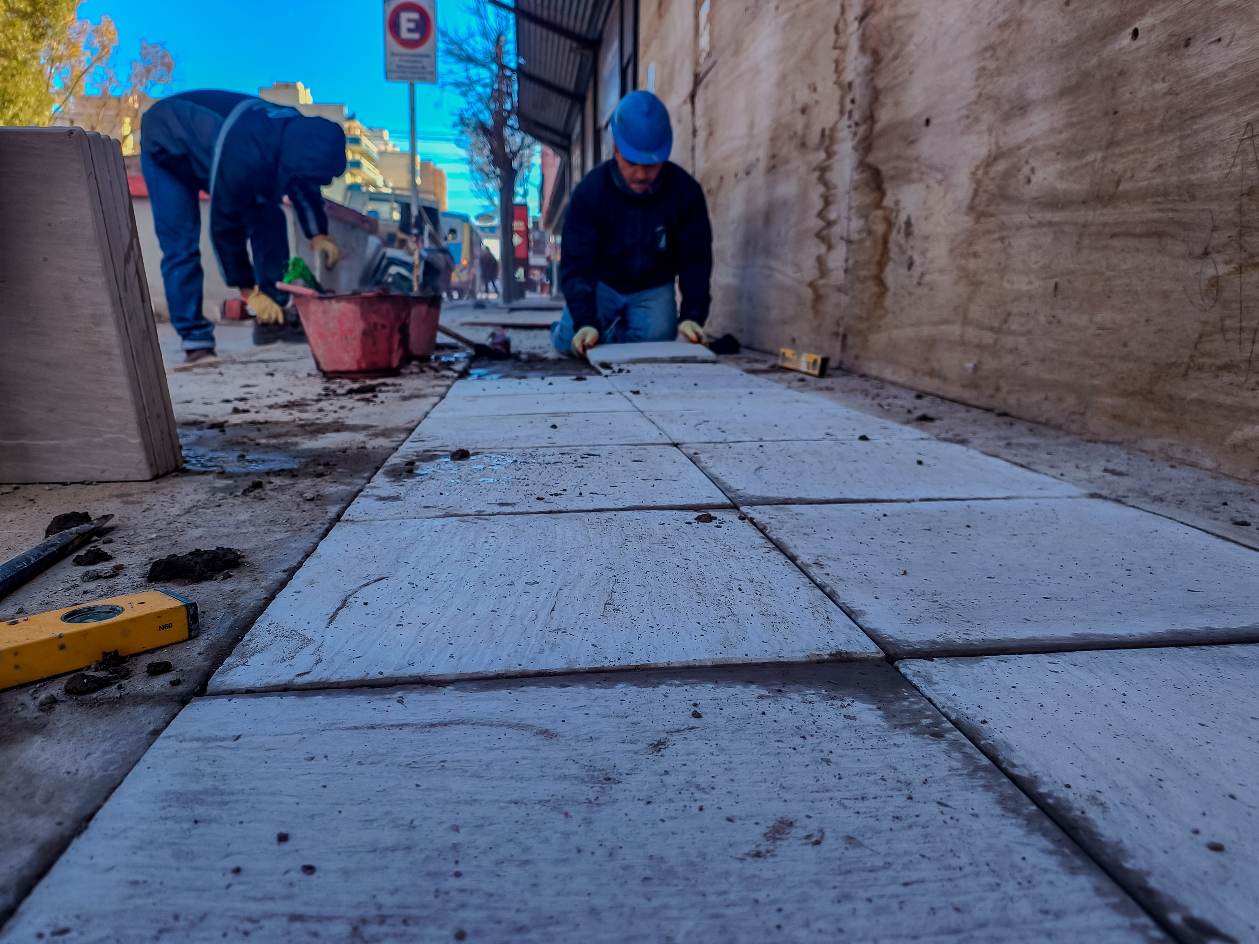 Nuestro personal de Obras Civiles, dependiente de la Gcia. de Agua y Saneamiento, continúa con la reconstrucción de veredas afectadas por la extensión de redes de agua potable, sobre la calle Mitre.