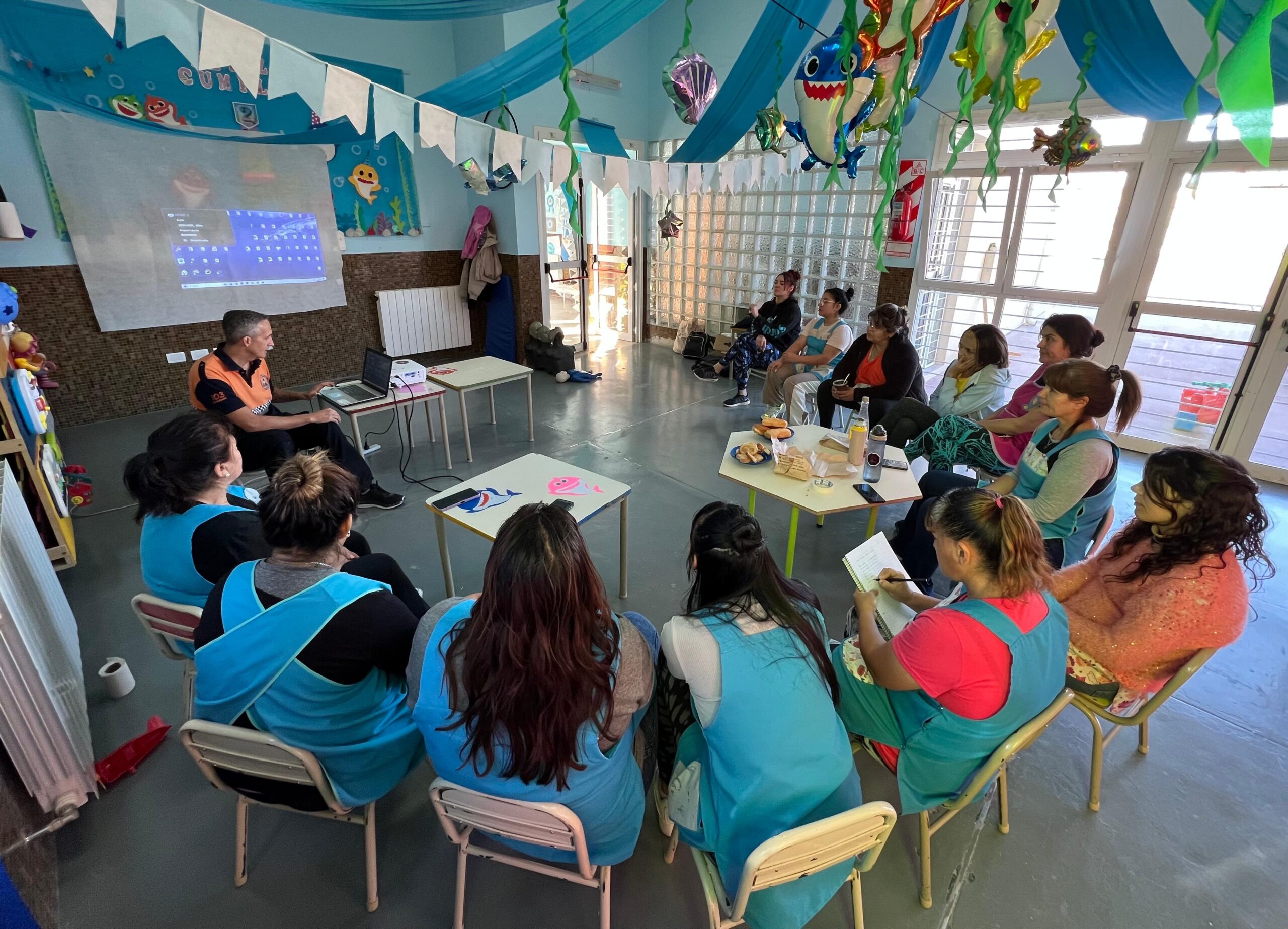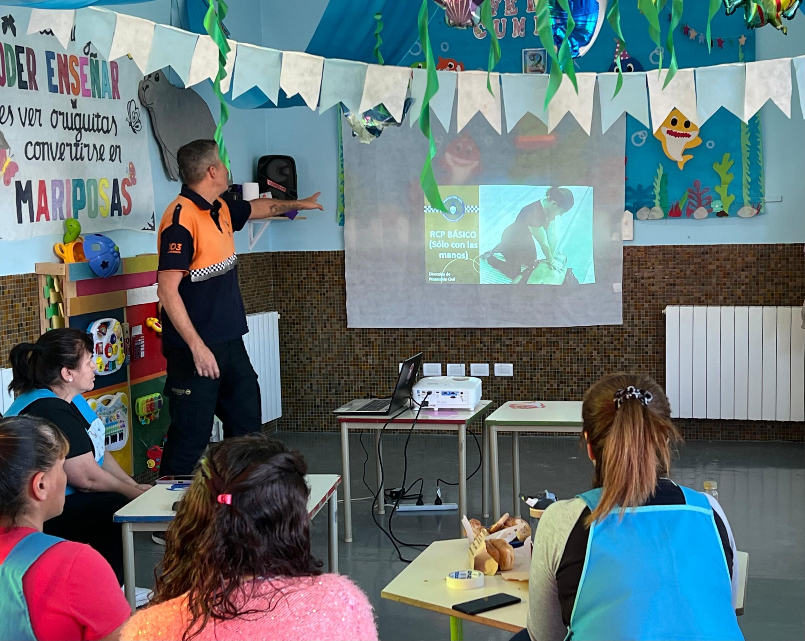Las capacitaciones están a cargo de Juan Rigamonti, instructor del área Municipal de Protección Civil, quien brinda herramientas teóricas y prácticas fundamentales para la atención de situaciones de emergencia en la infancia.