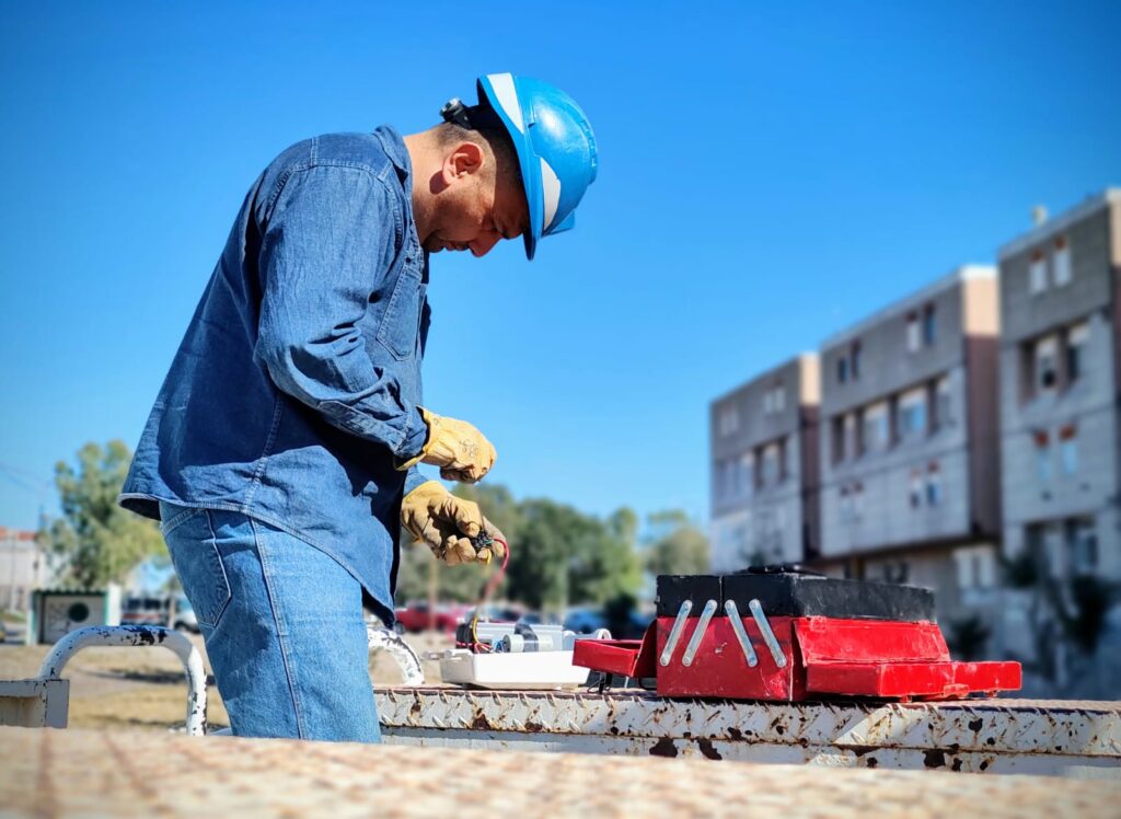 Durante la mañana de hoy, un equipo de alumbrado, realizó diversas tareas de mantenimiento y chequeos generales sobre luminarias y cajas de automatismo, del servicio de alumbrado público. Las intervenciones se ejecutaron sobre los accesos del barrio Roca.