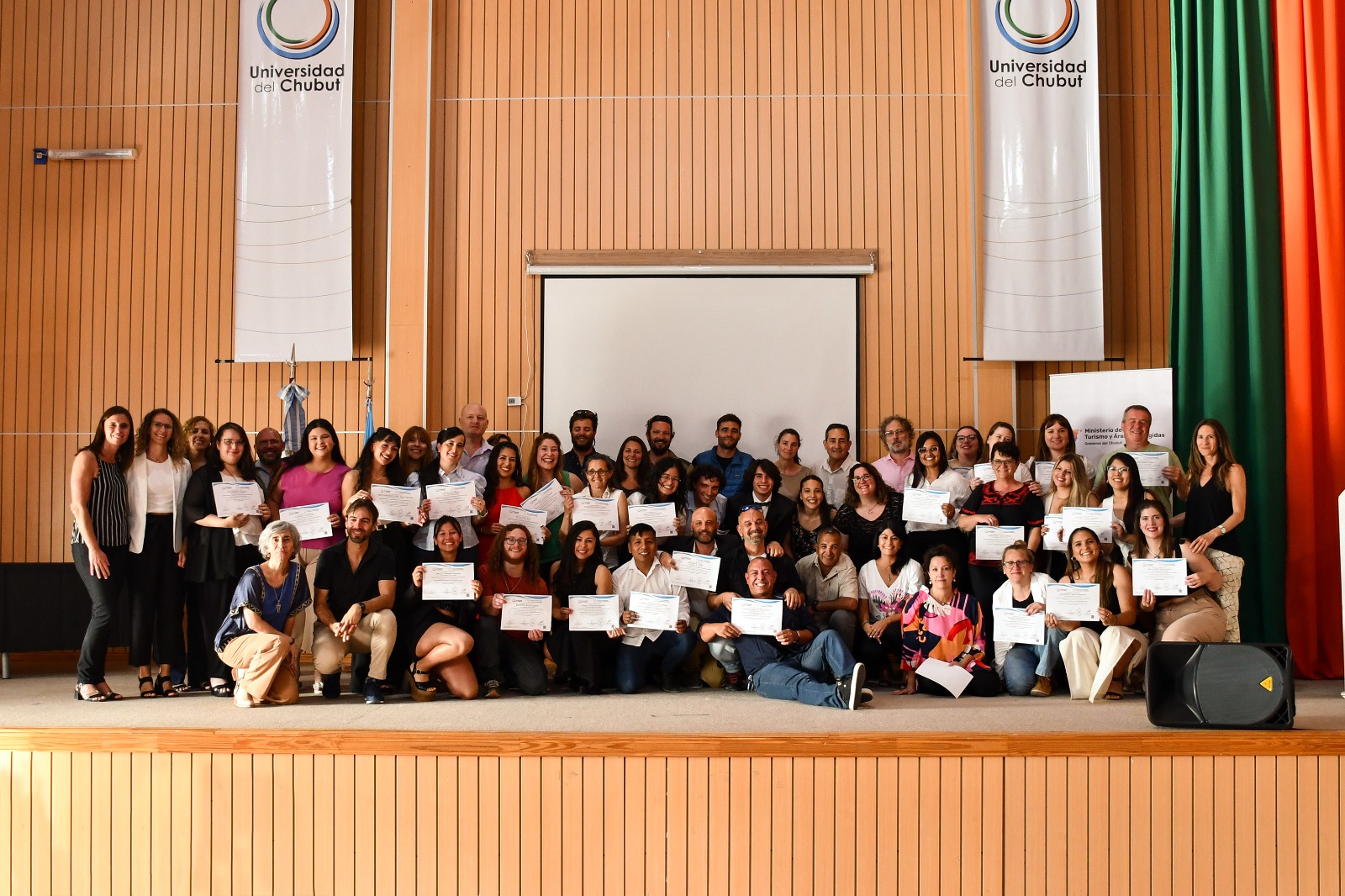 Los egresados recibieron sus diplomas tras completar el curso de formación impulsado en forma conjunta por el Ministerio de Turismo y Áreas Protegidas y la Universidad del Chubut.