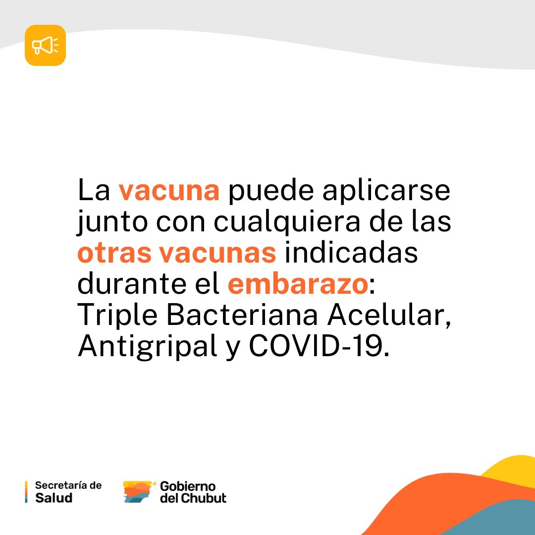 Además, esta vacuna puede aplicarse junto con cualquiera de las otras indicadas durante el embarazo, como la vacuna Triple Bacteriana Acelular, la vacuna antigripal y la vacuna contra el Covid-19.