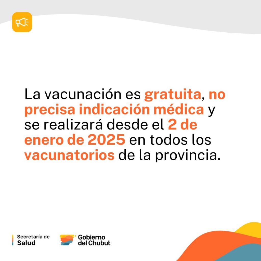 La vacunación es gratuita, no precisa indicación médica y se realizará desde el 2 de enero en todos los vacunatorios de la provincia.