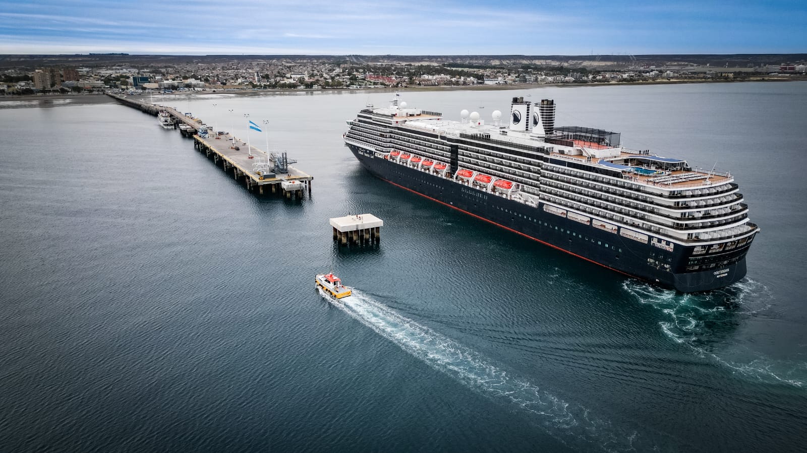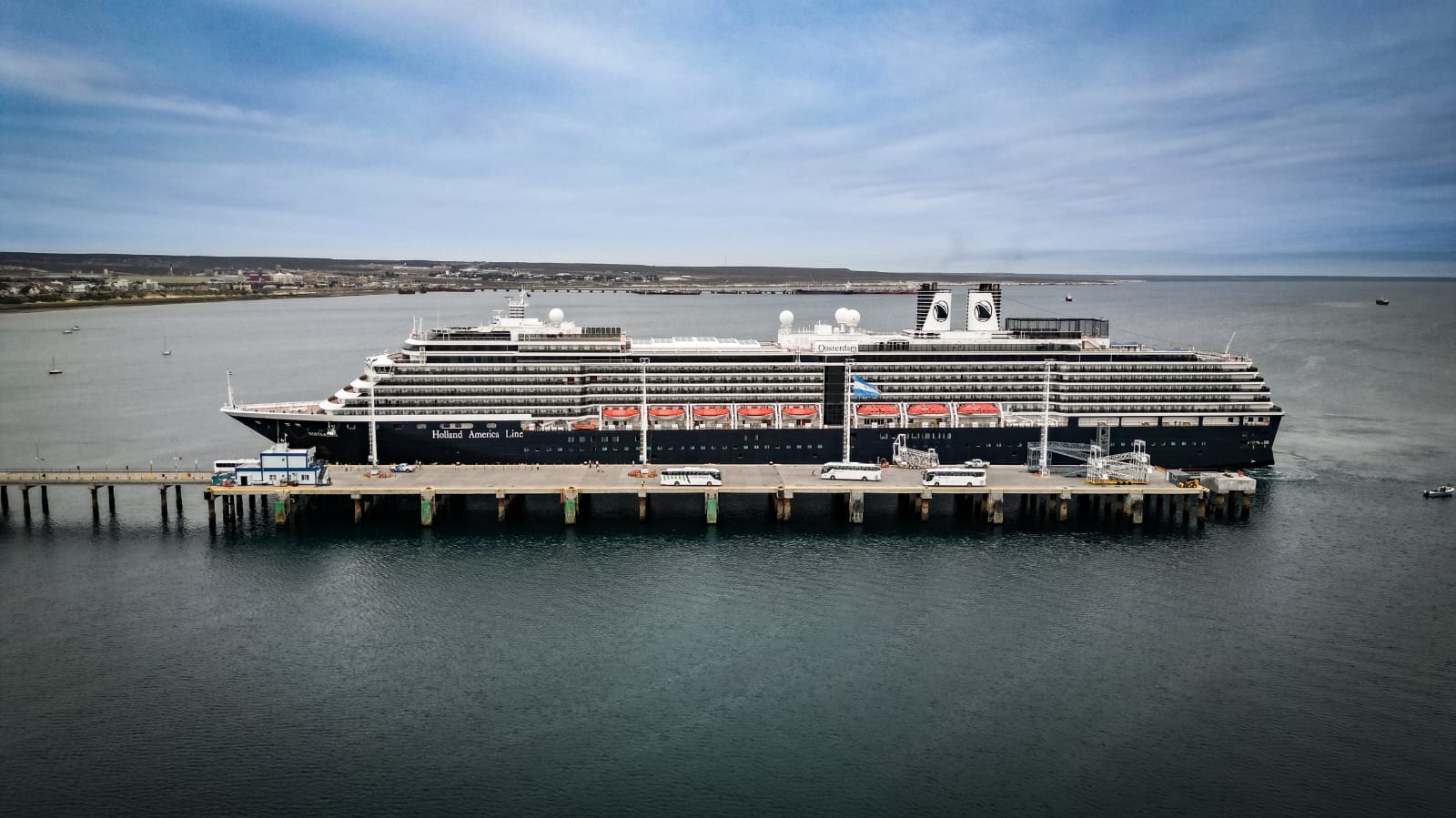 La embarcación, de 285 metros de eslora y bandera de Holanda, amarró minutos antes de las 8 de la mañana sobre la margen norte del Muelle Comandante Luis Piedra Buena, procedente de las Islas Malvinas. A bordo transporta 1.904 pasajeros y 791 tripulantes, quienes durante la jornada pueden recorrer la ciudad y disfrutar de los atractivos turísticos y la oferta de servicios de la Comarca VIRCh-Valdés.