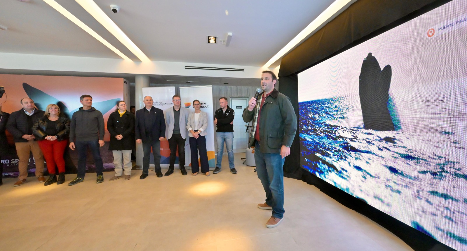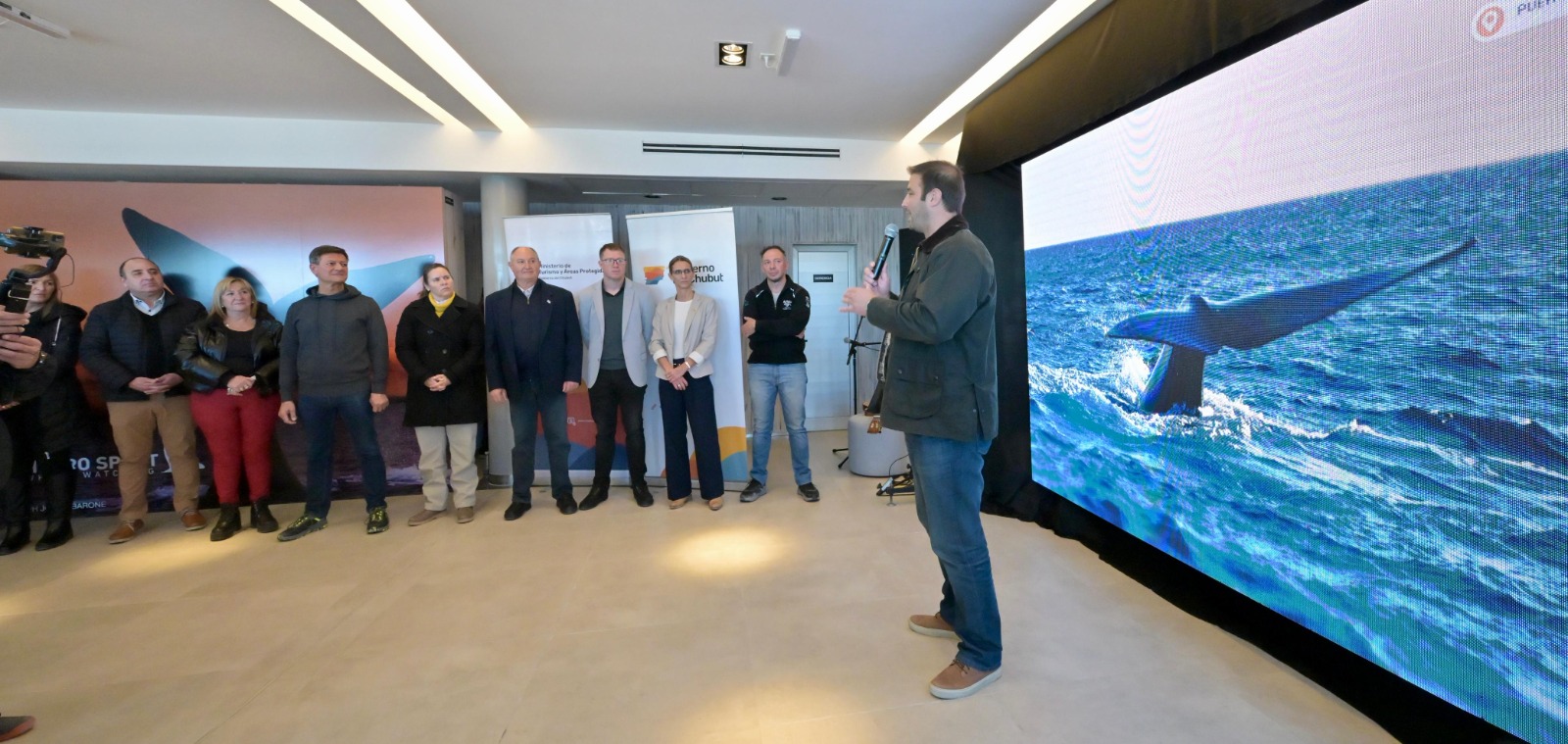 Al hablar en el acto, el ministro de Turismo y Áreas Protegidas Diego Lapenna destacó que «es un orgullo este lanzamiento por varios factores: pero sobre todo porque están presentes grandes pioneros de la actividad. Al comienzo de la gestión del gobernador Ignacio Torres, quisimos reivindicar todo el trabajo realizado por los pioneros», dijo y reivindicó la presencia de todos ellos al indicar que el de Chubut demuestra «que es uno de los mejores avistajes del mundo».