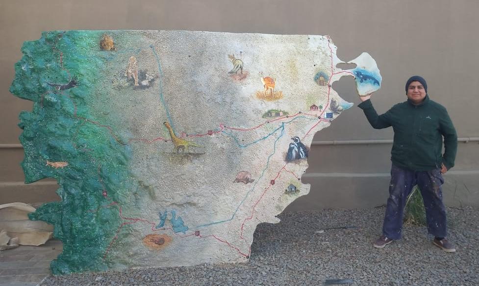 “Es un mapa didáctico y educativo, para que lo vean los chicos de las escuelas y cualquier tipo de persona que transite por esta zona de Madryn”, dijo el artista Marcos Agüero.