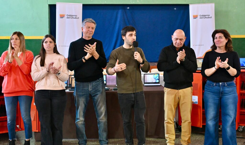 La entrega encabezada por Torres consistió en equipamiento enmarcado en el Programa de Fortalecimiento Tecnológico para Instituciones Educativas, que impulsa el Ministerio de Educación de Chubut.