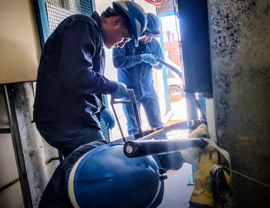 Nuestro personal de Subestaciones realizó el armado de terminales de nuevas líneas subterráneas de media tensión en la intersección de Av. Roca y España. Estas nuevas redes permiten continuar avanzando con el anillado subterráneo de media tensión en la zona céntrica.