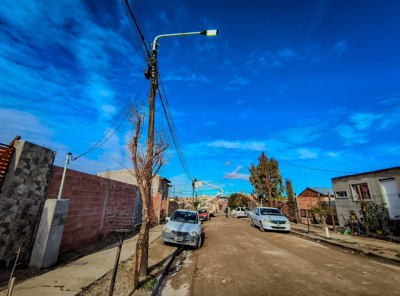 Nuestro personal de Alumbrado, continúa con la instalación de nuevas luminarias LED en distintos puntos del Barrio Nueva Chubut, en la zona noroeste de la ciudad. En esta oportunidad sobre la calle Paraje el Sombrero entre Ameghino y Paso de Indios.