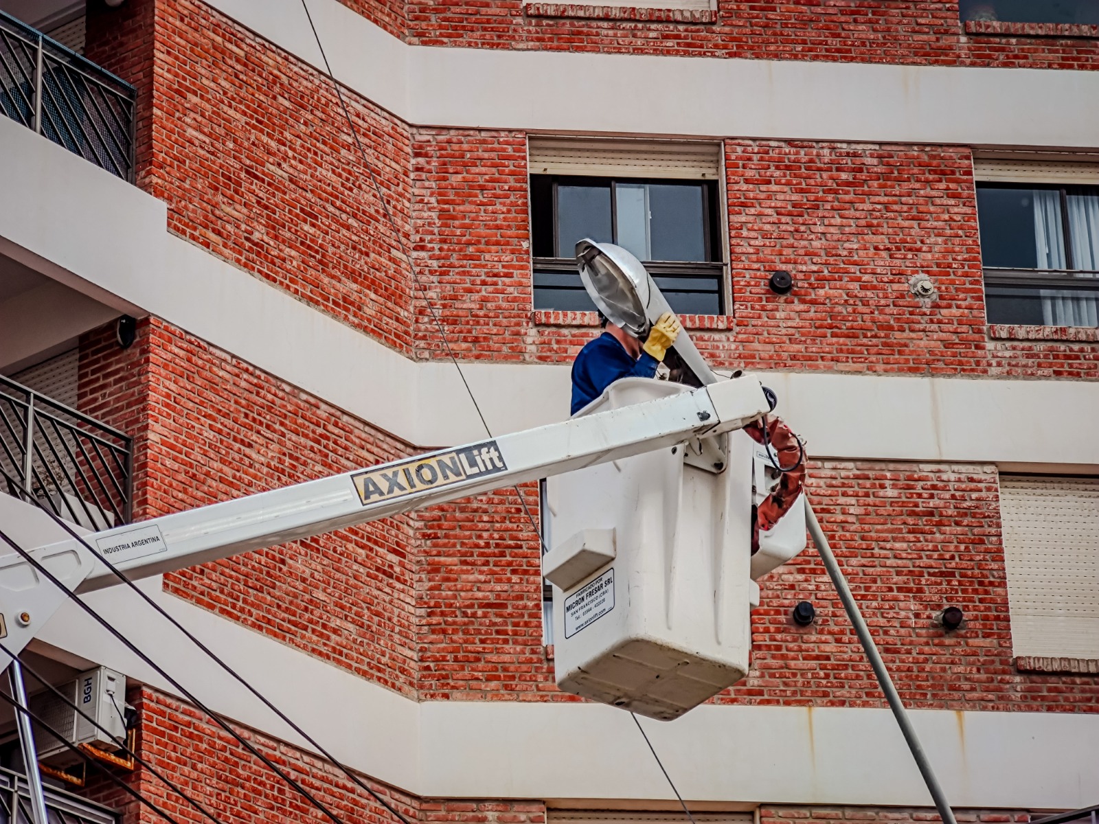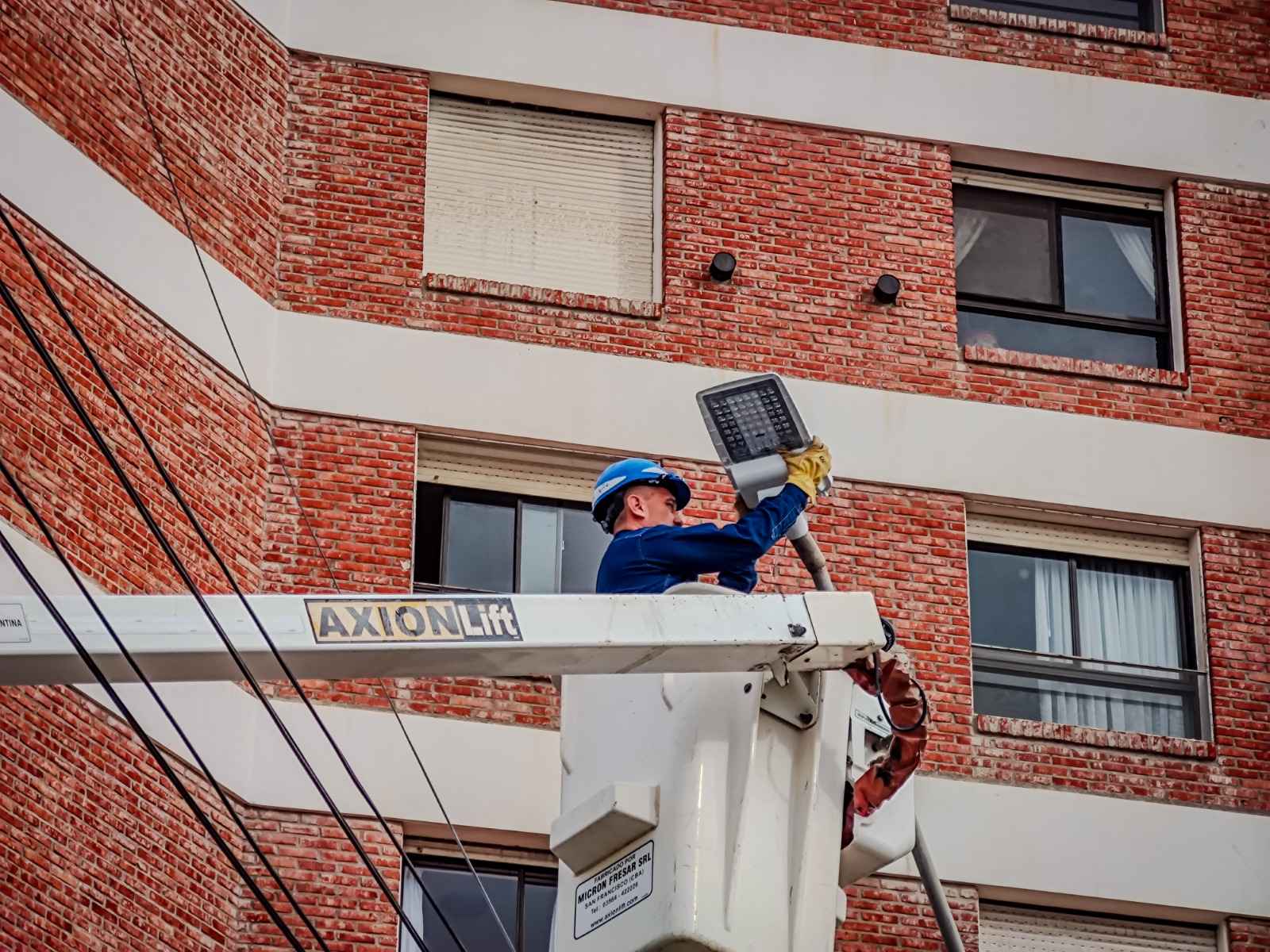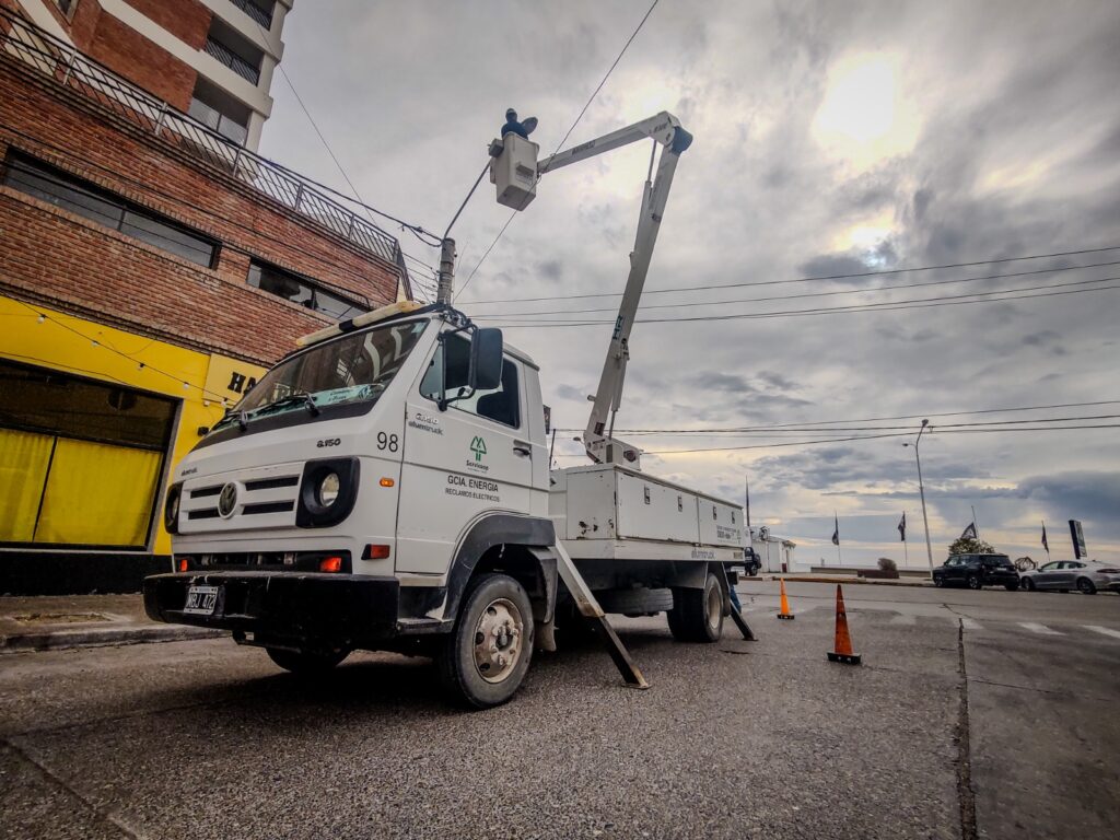 Nuestro personal de alumbrado continúa con la renovación de luminarias en distintos puntos de la ciudad. En esta oportunidad, se instalaron nuevos artefactos LED sobre la calle Perloti, entre Bv.Brown y Av. Roca.