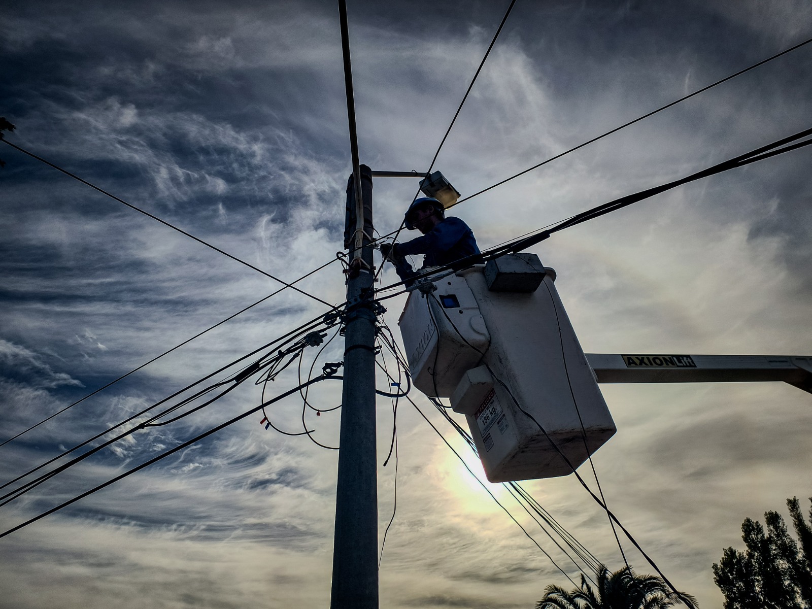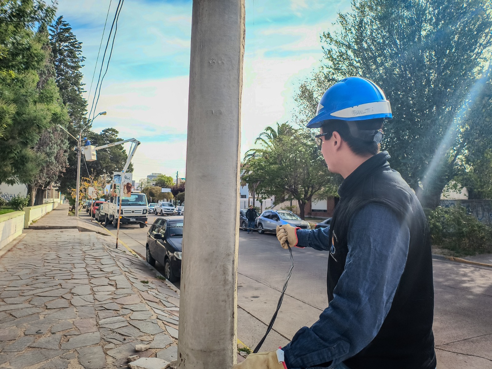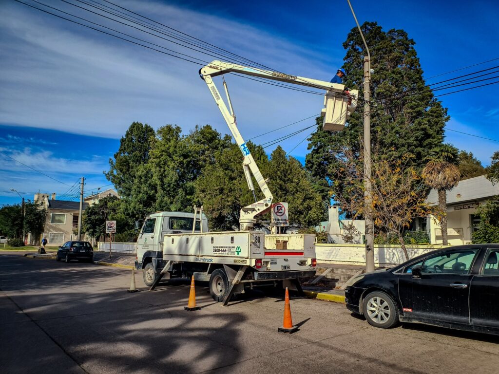 Nuestro personal de alumbrado continúa realizando tareas de mantenimiento en distintos puntos de la ciudad, luego de que el temporal de viento, afectara postes y redes eléctricas. En esta oportunidad se repuso la línea perteneciente al alumbrado público sobre la calle 25 de mayo entre Rivadavia y Moreno.