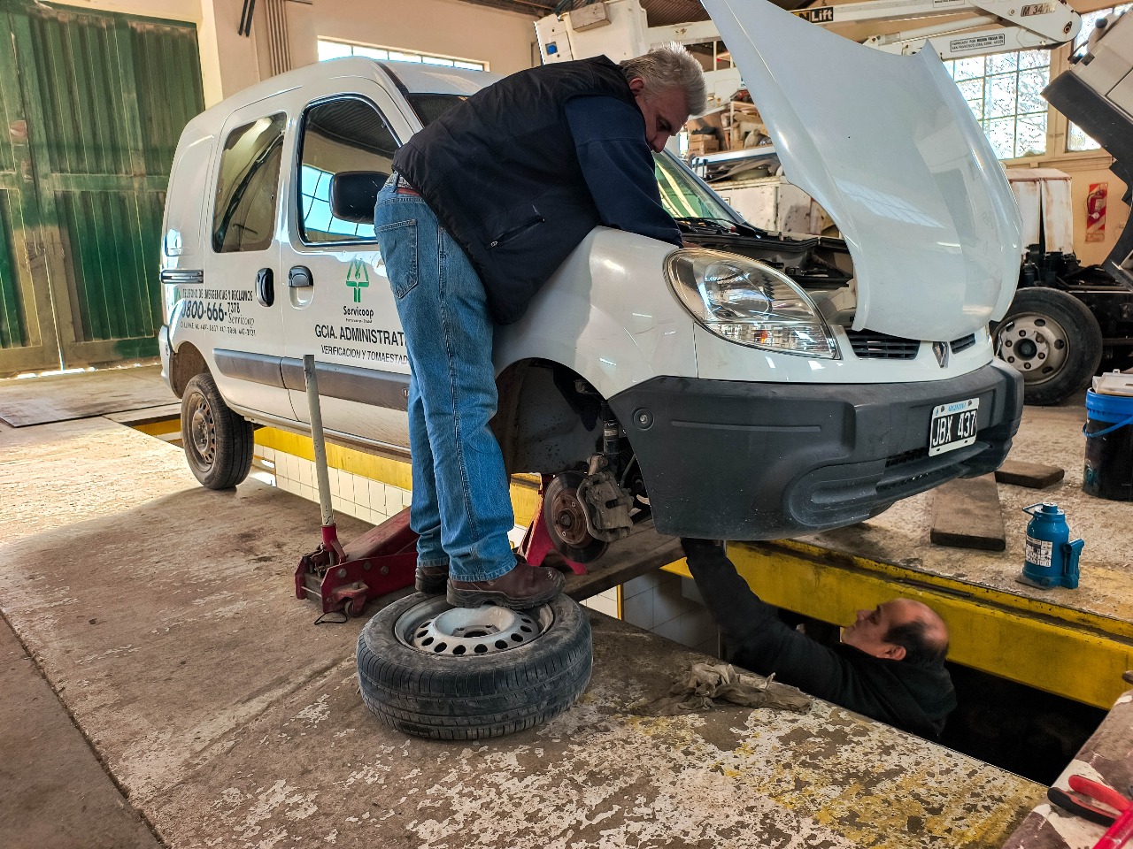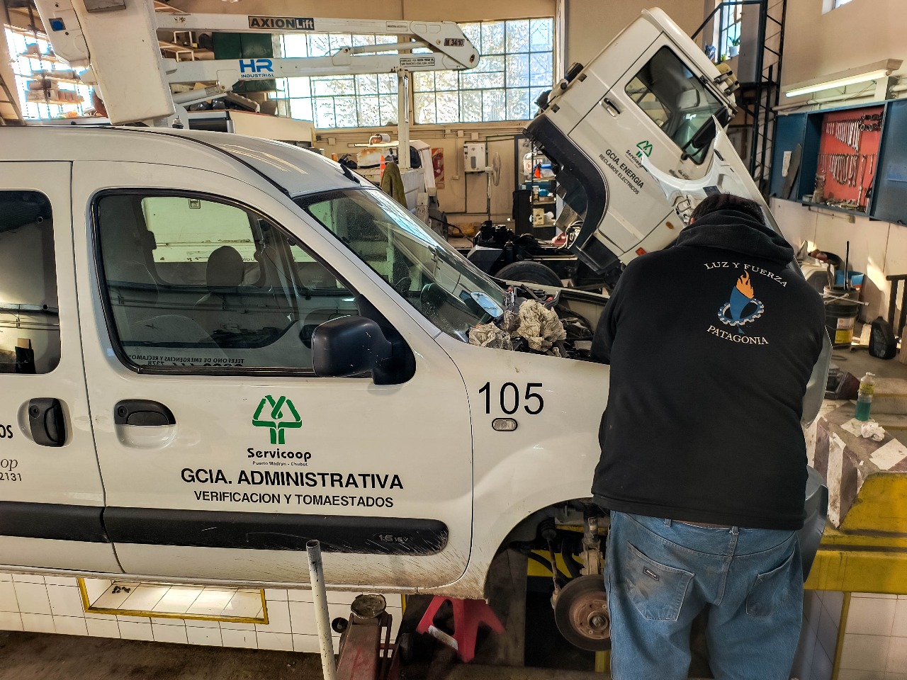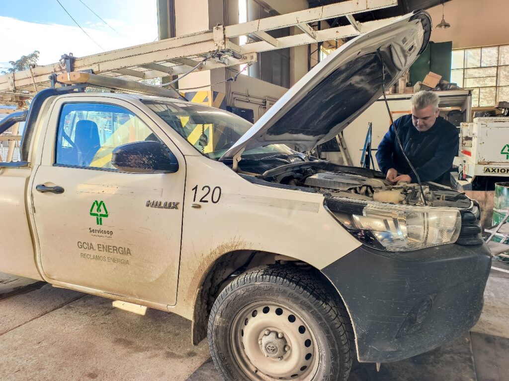 Nuestro personal del Taller mecánico realiza rutinariamente el mantenimiento de más de 90 unidades vehiculares con las que cuenta la Cooperativa para la prestación de los servicios. En esta oportunidad se llevaron adelante tareas sobre distribución, reemplazo de fluidos y chequeos sobre sistemas eléctricos a dos móviles pertenecientes a los sectores de Reclamos Eléctricos y Administración.