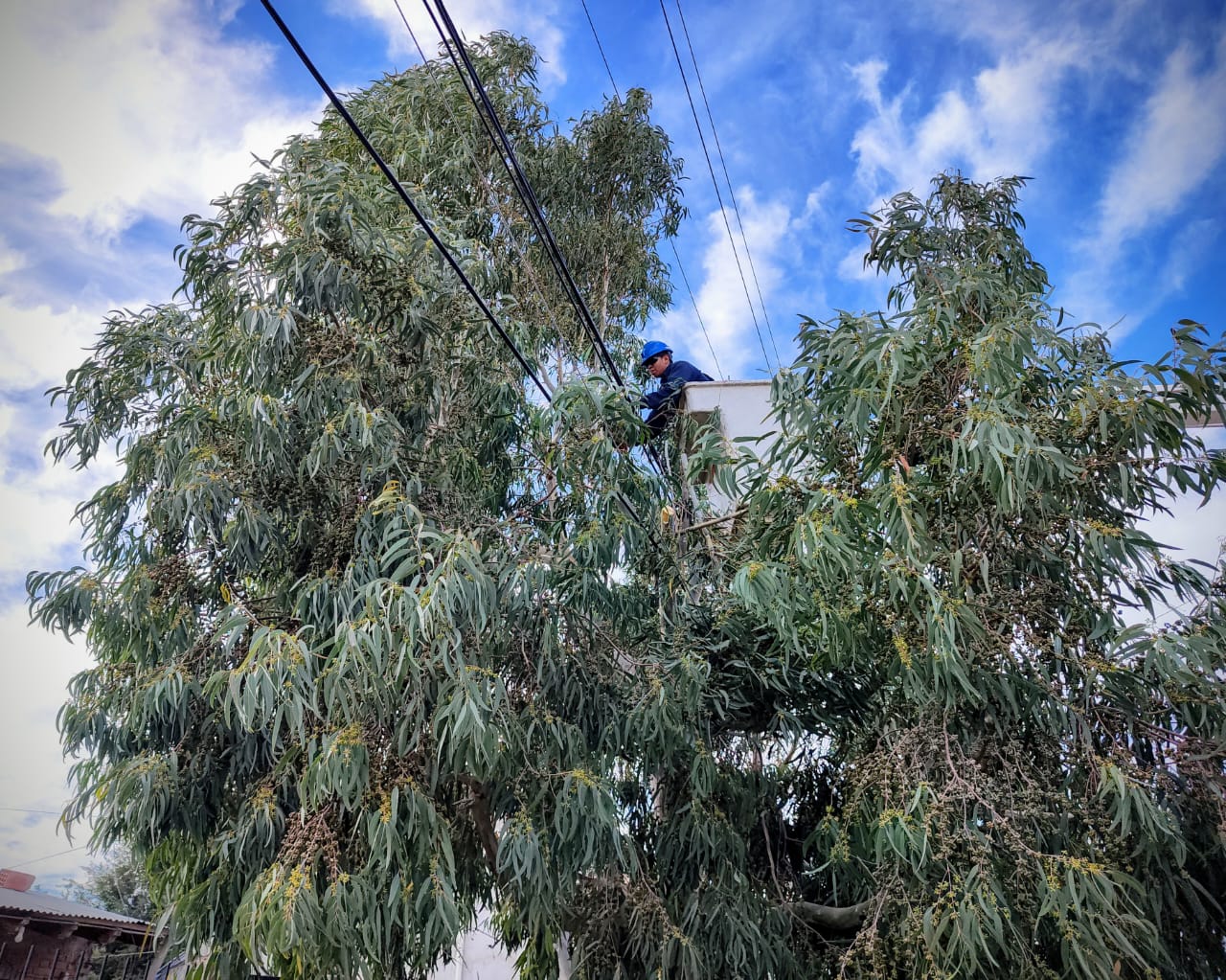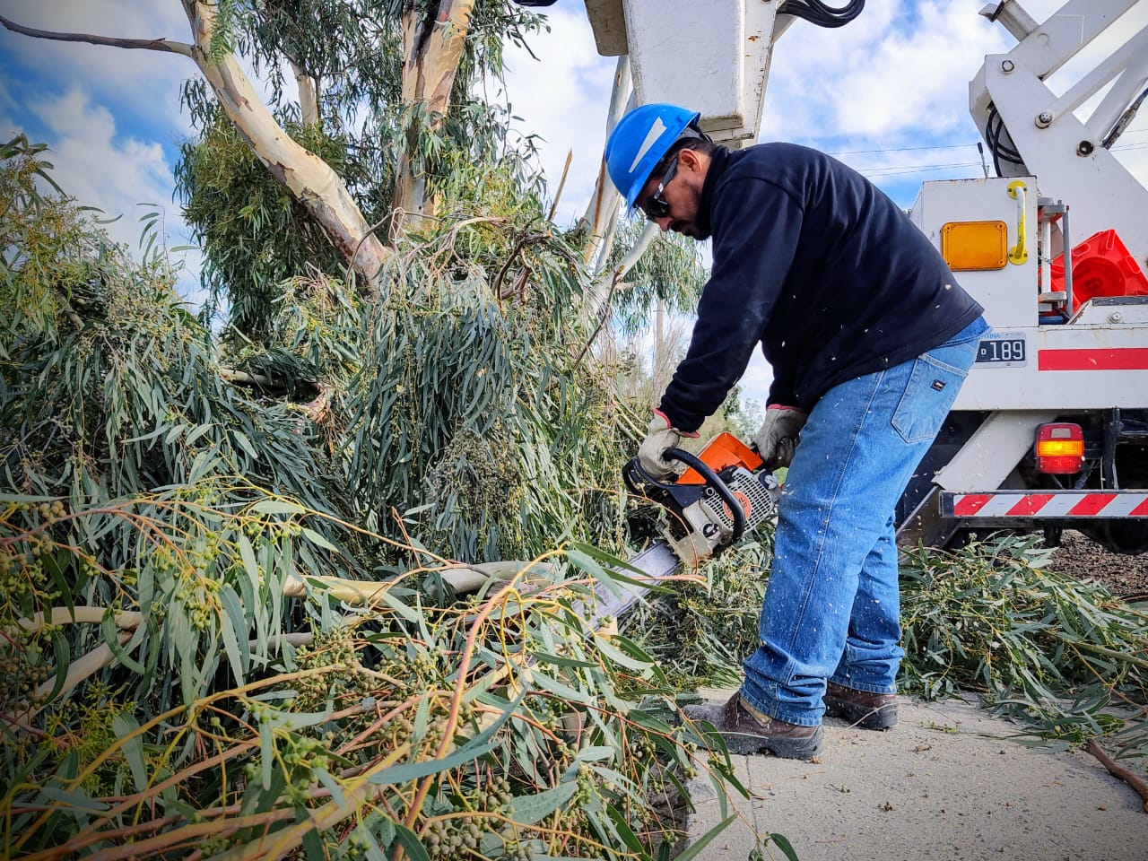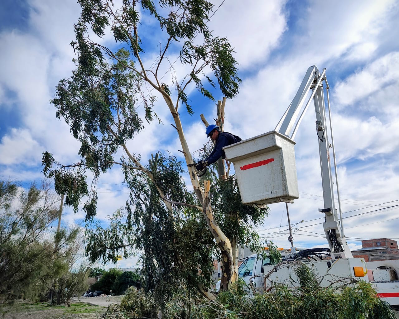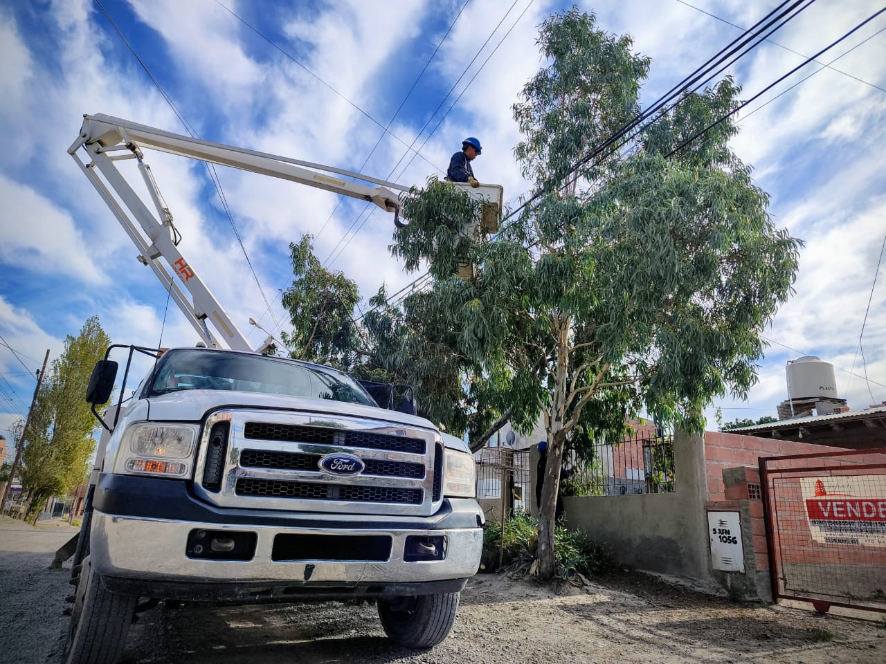 Luego de realizar el ingreso de la subestación de Tecka y Alto Rio Senguer, nuestro personal de energía lleva adelante el despeje aéreo de redes de baja tensión en Estivariz y Periodistas Chubutenses y en San Juan al 1050. Está tarea previene que las ramas de los árboles dañen nuestras instalaciones.