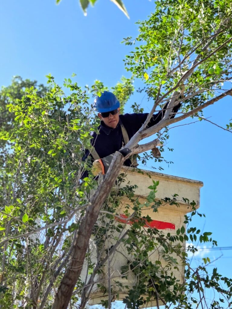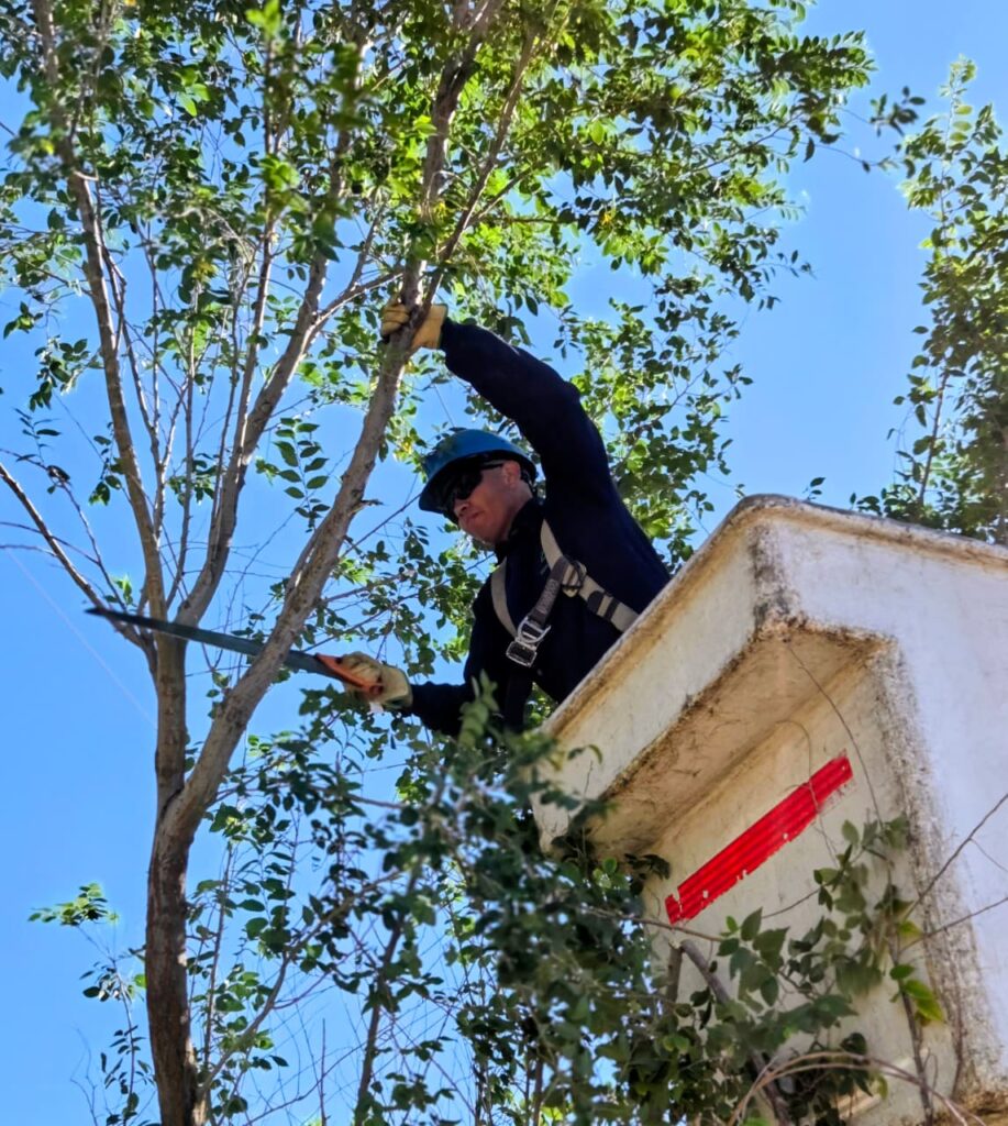 Durante la mañana de hoy el equipo de redes, tuvo que intervenir sobre vegetación que estaba invadiendo el espacio aéreo de seguridad de líneas de media tensión, en inmediaciones del parque pesquero de la ciudad. Este tipo de situación provoca daños sobre la infraestructura y en ocasiones origina que la vegetación comience a incendiarse. En esta oportunidad fuimos alertados por un trabajador del sector pesquero, que al pasar por el lugar advirtió que las ramas golpeaban fuertemente las redes de energía.