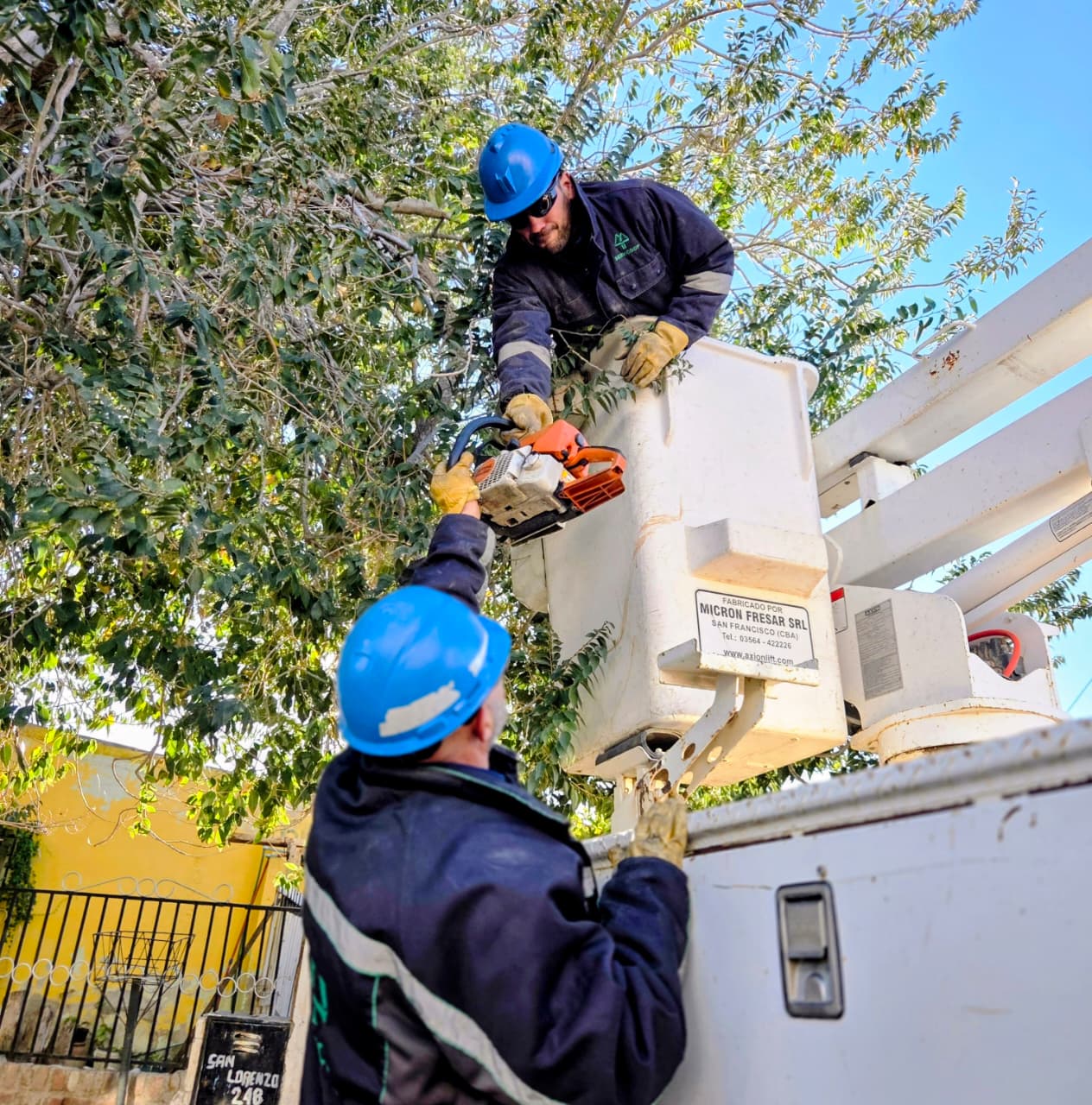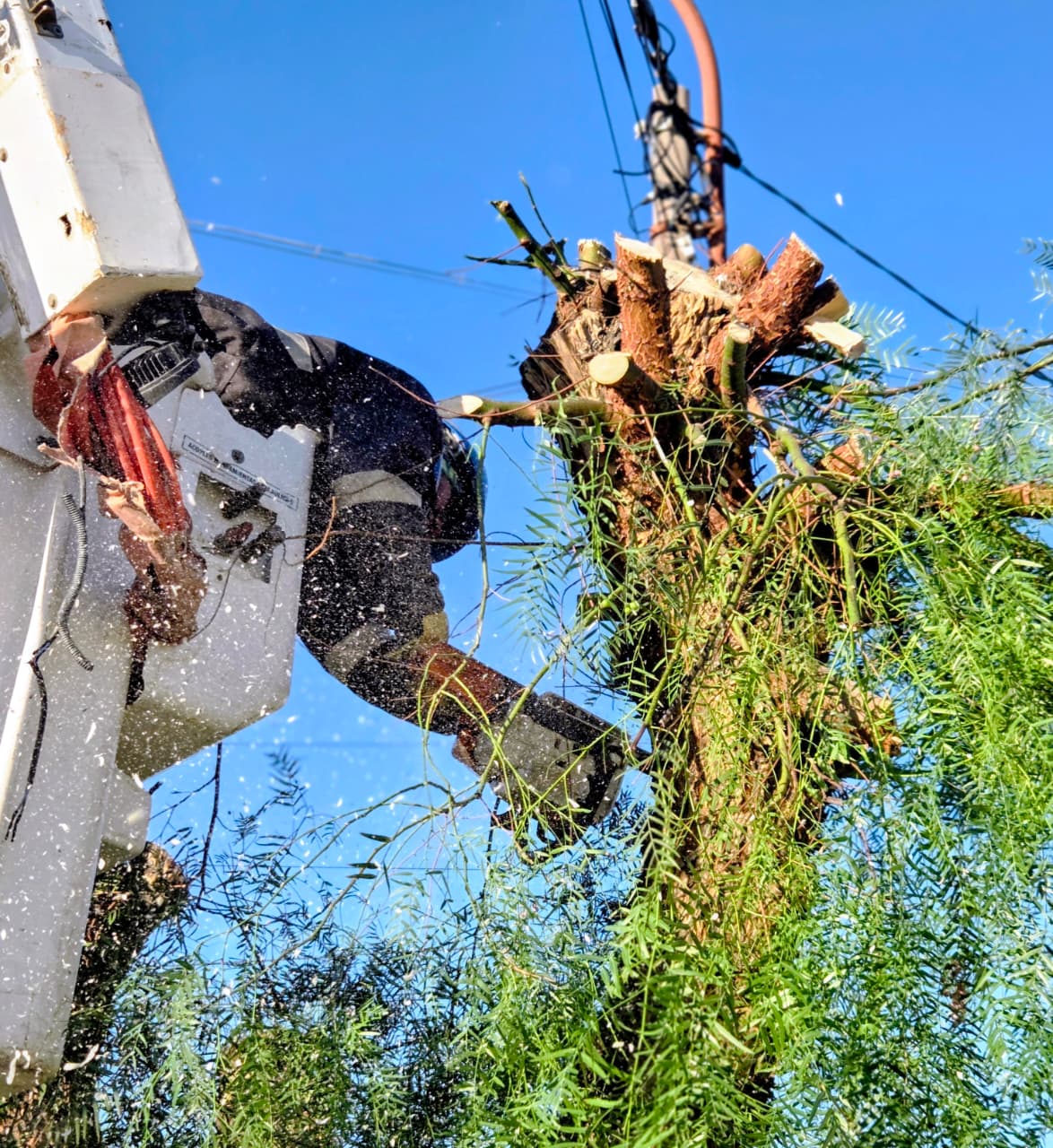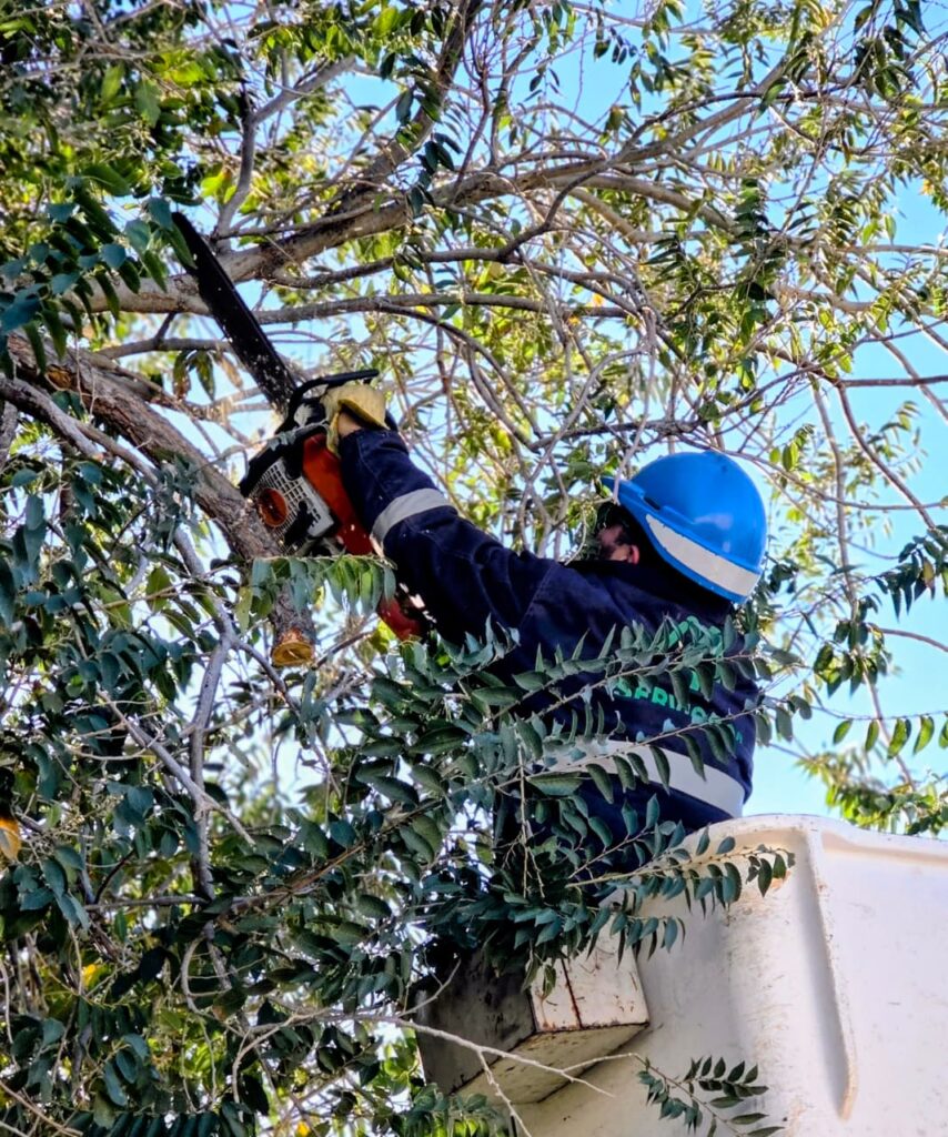 Durante la mañana de hoy, un equipo de energía, llevó adelante tareas de despeje aéreo en distintos sectores de la ciudad, con el objetivo de disminuir la posibilidad de daños en las redes eléctricas y prevenir cortes imprevistos en el suministro de energía.