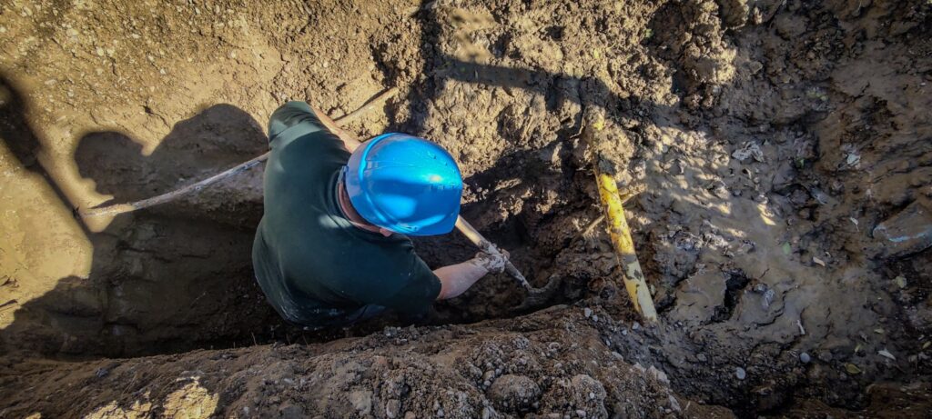 Nuestro personal de agua y saneamiento, lleva adelante la desvinculación de antiguas conexiones domiciliarias en la zona oeste de la ciudad. Esta tarea se realiza, luego de haber instalado nuevas redes de distribución y sus correspondientes conexiones domiciliarias.