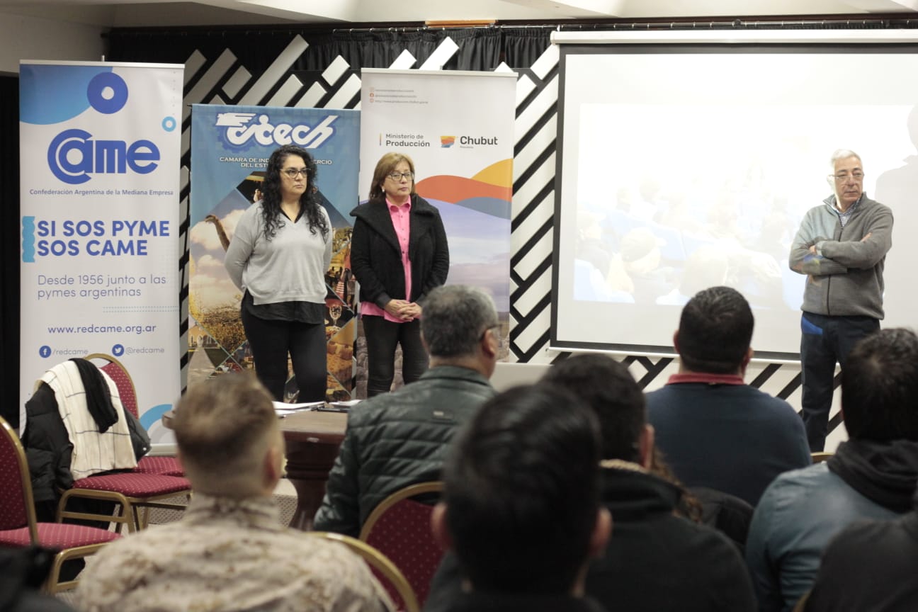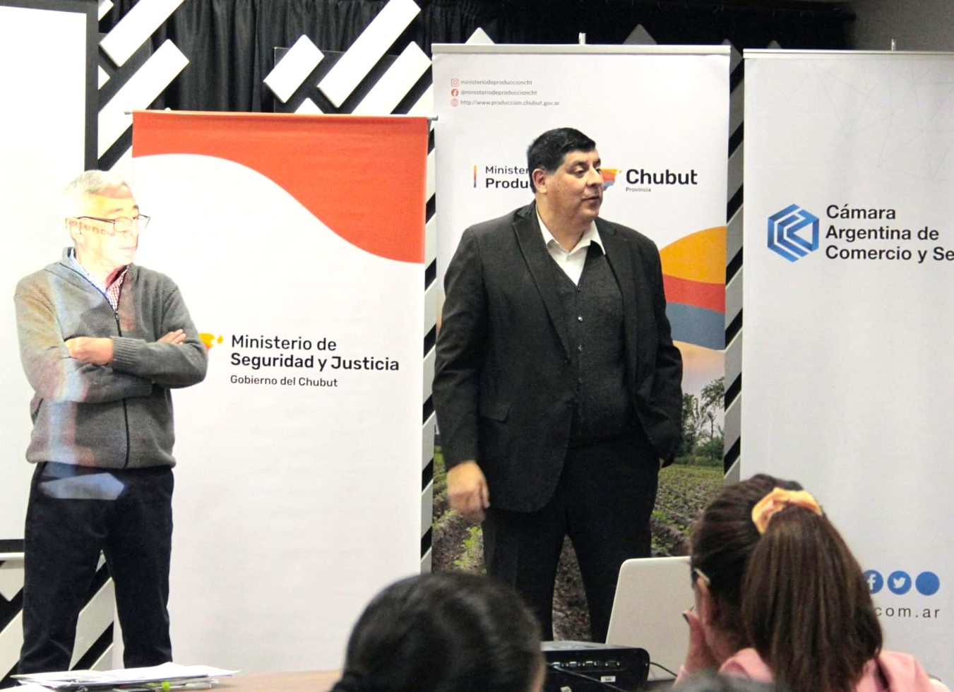 De la actividad, que se llevó a cabo en el Salón de la Cámara de Industria y Comercio de Trelew, participaron el subsecretario de Seguridad, Claudio Fernández y el director de Comercio Interior, Roberto Quiroga. La jornada estuvo a cargo de Carina Díaz y Marcia Flores, ambas del Ministerio de Producción, y contó con la colaboración de la Dirección de Asistencia y Capacitación del Ministerio de Seguridad y Justicia.