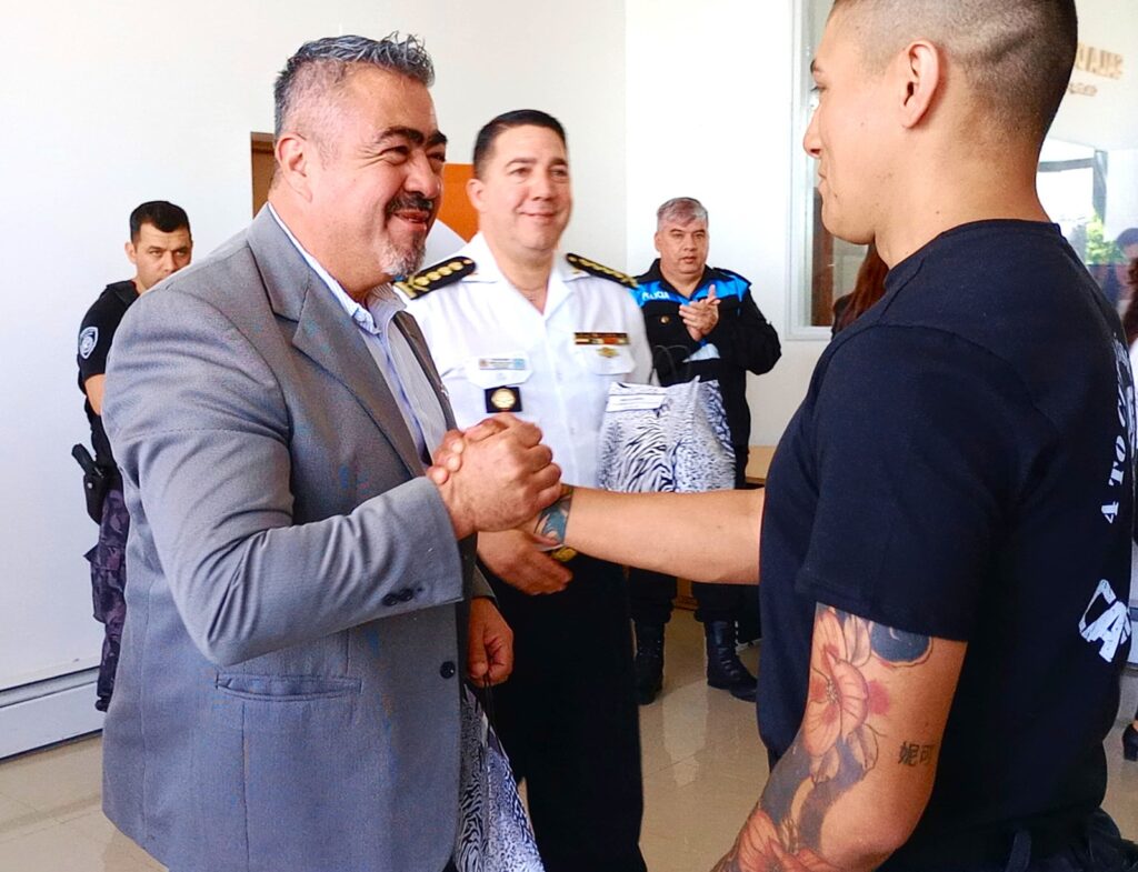 El acto tuvo lugar en las instalaciones de la Jefatura de Policía de Rawson y estuvo presidido por el ministro de Seguridad y Justicia, Héctor Iturrioz, y el jefe de la fuerza, Andrés García. También asistieron los subsecretarios de Seguridad, Claudio Fernández; de Seguridad Vial, Germán Lagos; y de Protección Ciudadana, Eduardo Pérez; así como el subjefe de Policía, Mauricio Zabala; el intendente de Trelew, Gerardo Merino; el secretario de Gobierno de ese municipio Mario Romeo; y el coordinador de Seguridad de Trelew, Adrián Muñoz; junto a directores de la Plana Mayor, Bomberos Voluntarios de Trelew, el jefe de la sección Canes de Trelew, Saúl Ale; jefes de Áreas, y personal policial de diversas dependencias.