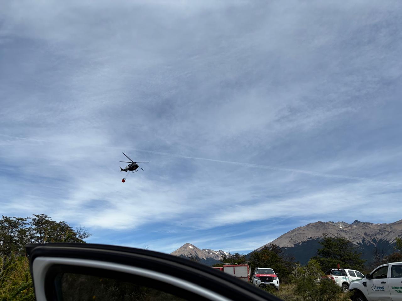 El siniestro continúa activo y lleva afectadas 1.052 hectáreas de arbustos, matorrales, pastizales y bosque nativo. Personal del Servicio Provincial de Manejo del Fuego, Vialidad Provincial, bomberos y un helicóptero, entre otros, trabajan en el combate de las llamas.