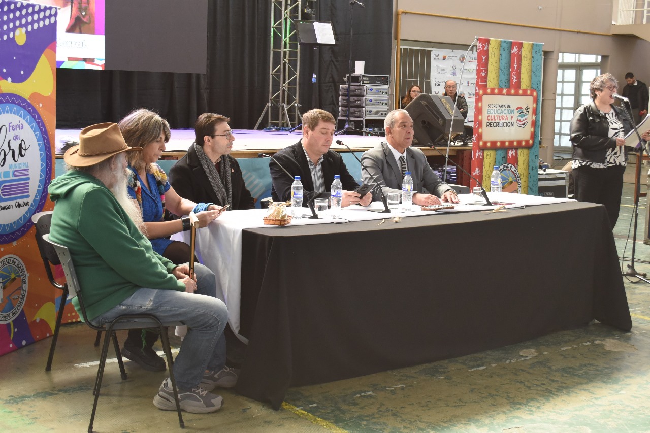 En el acto de apertura de la Feria Municipal del Libro de Rawson, que se está llevando adelante en el Salón de Usos Múltiples que comparten las escuelas N°4 y N°752 estuvieron presentes el subsecretario de Cultura de la Provincia, Osvaldo Labastié; el intendente de Rawson Damián Biss y el secretario de Cultura municipal, Daniel Tamame; acompañados por el escritor nacional Roberto Moscoloni y la referente de la Biblioteca Nacional, Flavia Alguero.