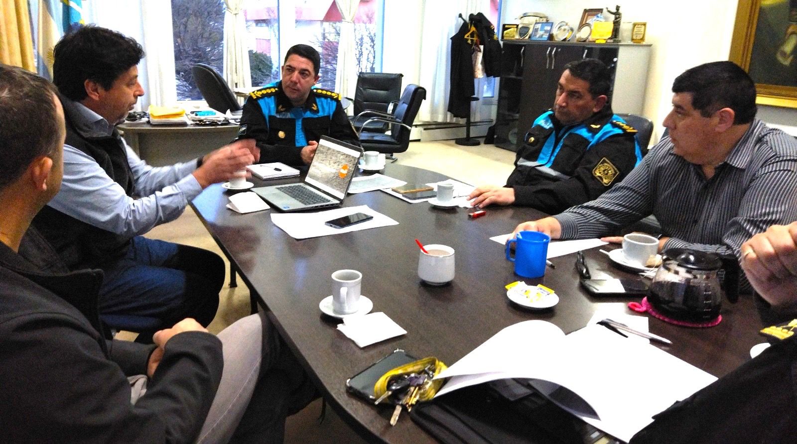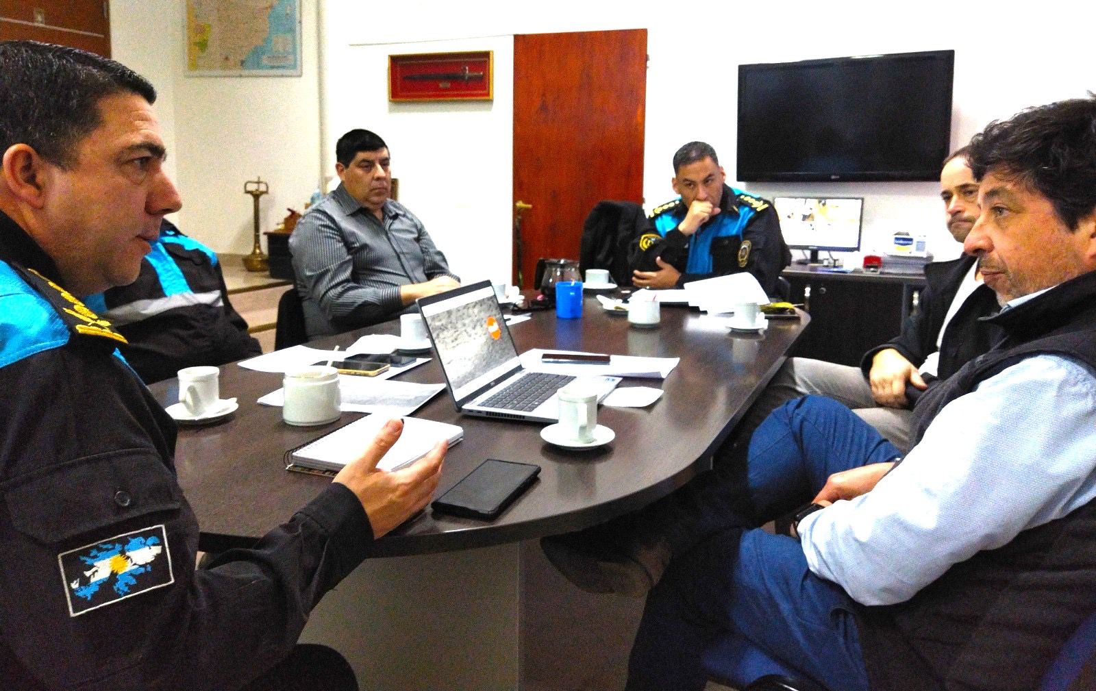 El encuentro se realizó en la Sala de Situación de Jefatura de Policía de Rawson y participaron el subjefe de la Fuerza Mauricio Zabala; el director de Policía Judicial, Eduardo Chemin y el director de Seguridad, Omar Delgado de la Plana Mayor de la Fuerza.