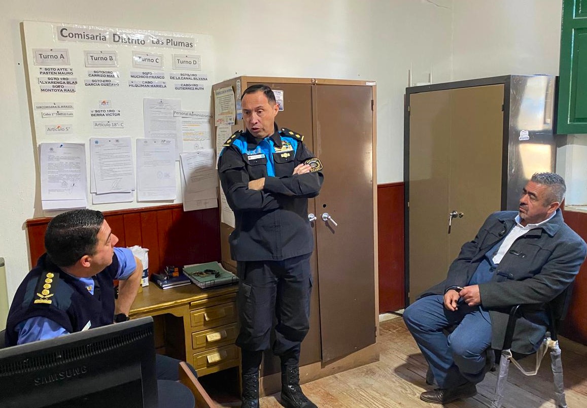 Por otra parte, y en el marco de la visita a Las Plumas, el ministro de Gobierno y Justicia, Héctor Iturrioz; junto al jefe de la Policía del Chubut, Andrés García; y al subsecretario de Protección Ciudadana, Eduardo Pérez; mantuvieron una reunión con el jefe de la comisaría local, dialogaron con el personal policial y recorrieron las instalaciones de la dependencia, verificando el funcionamiento y la infraestructura de la misma.