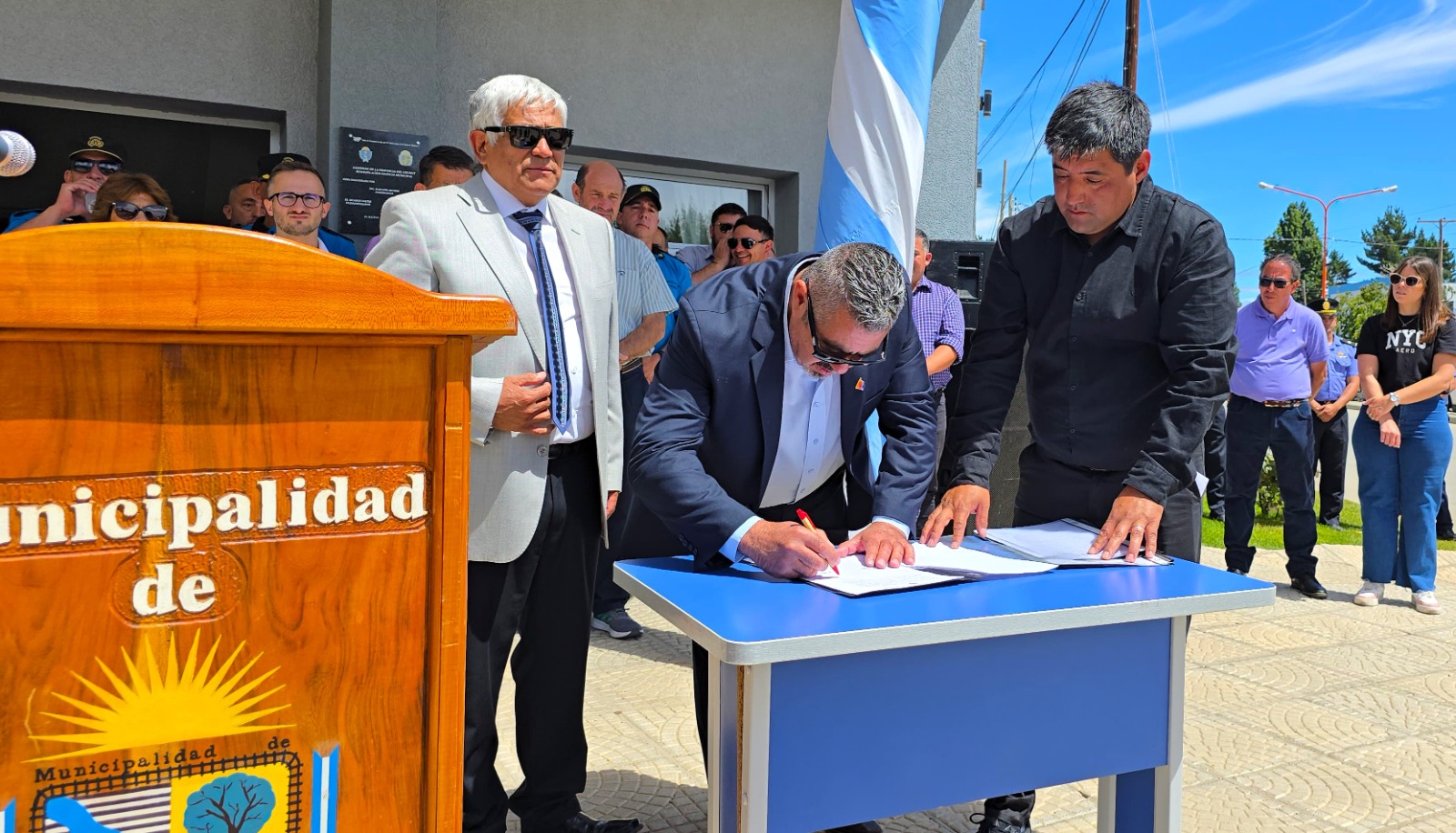 Acompañando a Iturrioz también estuvieron presentes por parte del gabinete provincial, el ministro de Gobierno, Victoriano Eraso Parodi; los subsecretarios de Justicia, Rodrigo Miquelarena y de Protección Ciudadana, Eduardo Pérez; el jefe de la Policía del Chubut, comisario general Andrés García, y el presidente del Instituto Provincial de la Vivienda, Federico Estévez.