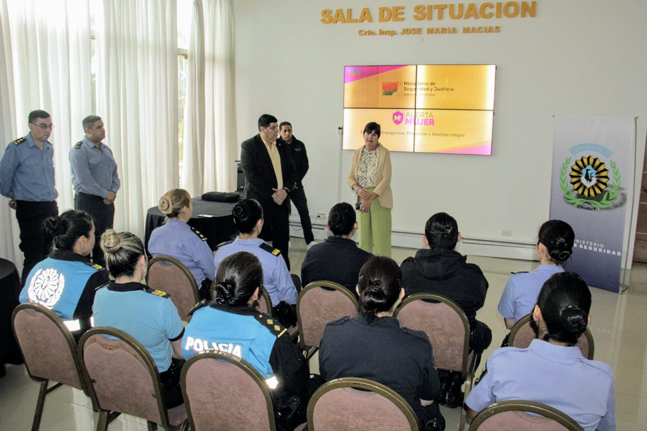 En el marco del Día de la Eliminación de la Violencia contra la Mujer, el Gobierno del Chubut, que conduce Ignacio «Nacho» Torres, presentó a través del Ministerio de Seguridad y Justicia, la plataforma “Alerta Mujer” para la prevención de violencia familiar y de género, en un encuentro que se desarrolló en la Sala de Situación de la Jefatura de Policía, en Rawson, con la participación del desarrollador de la aplicación, Sergio Manuel Gutiérrez.