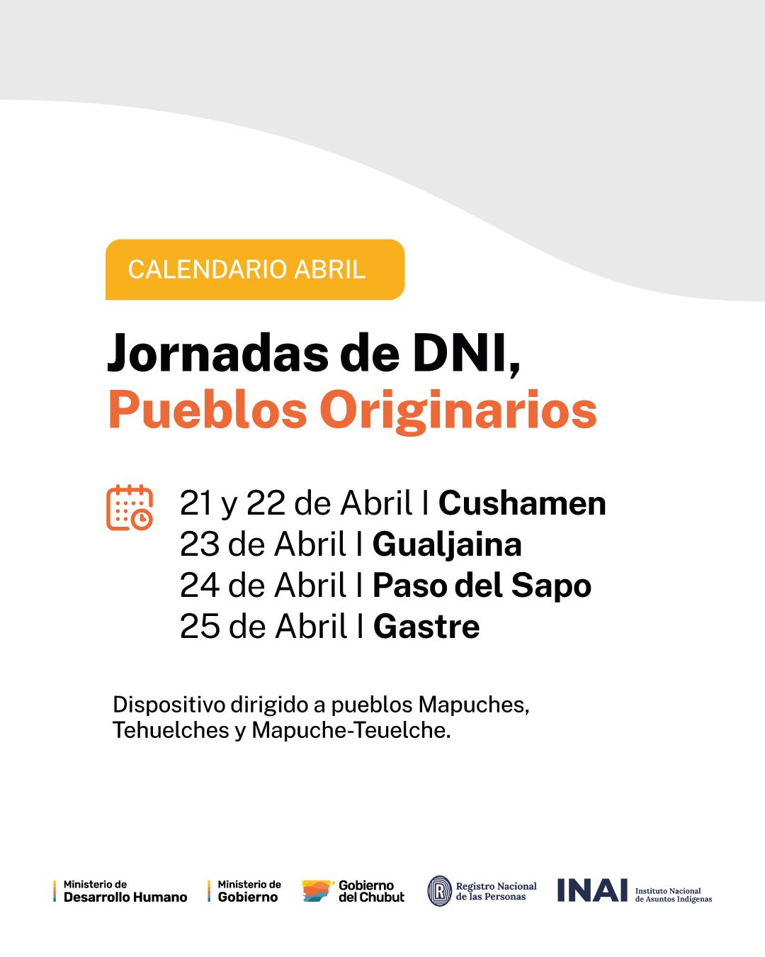 Si bien el operativo está orientado a acompañar especialmente a las comunidades de pueblos originarios, también se recibirán y gestionarán trámites de todos los ciudadanos y ciudadanas de estas localidades.
