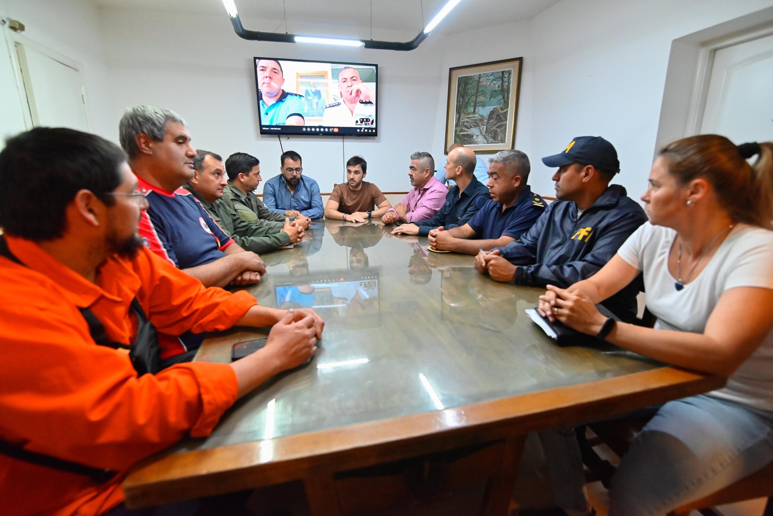 Estuvieron presentes, además, autoridades de la Subsecretaría de Protección Civil; referentes de los Bomberos Voluntarios de Esquel, de la Policía Federal Argentina, de la Gendarmería Nacional y de la Policía del Chubut. También participaron vía Zoom el jefe y subjefe de la Policía del Chubut, Andrés García y Mauricio Zabala, respectivamente.