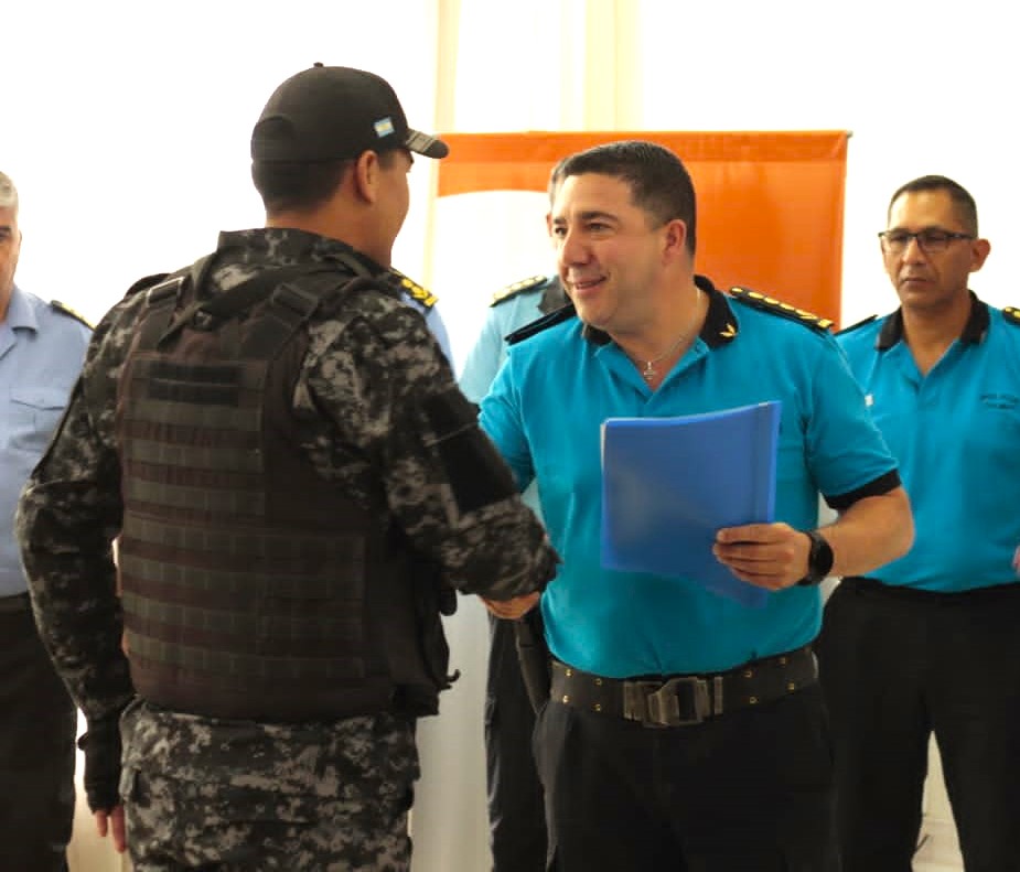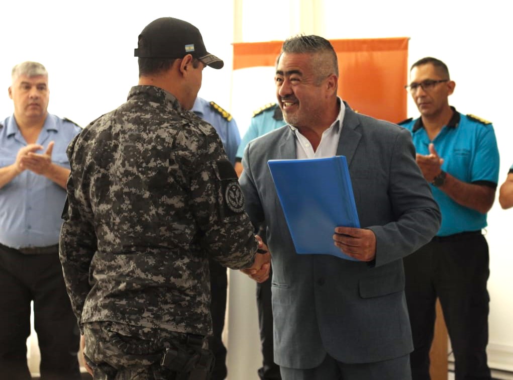 De la ceremonia, realizada en la Jefatura de Policía de la capital provincial, participaron también los subsecretarios de Protección Ciudadana, Eduardo Pérez; y de Seguridad Vial, Germán Lagos; el subjefe de la Fuerza, Mauricio Zabala; directores de la Plana Mayor; jefes de áreas e integrantes del GRIM Rawson.