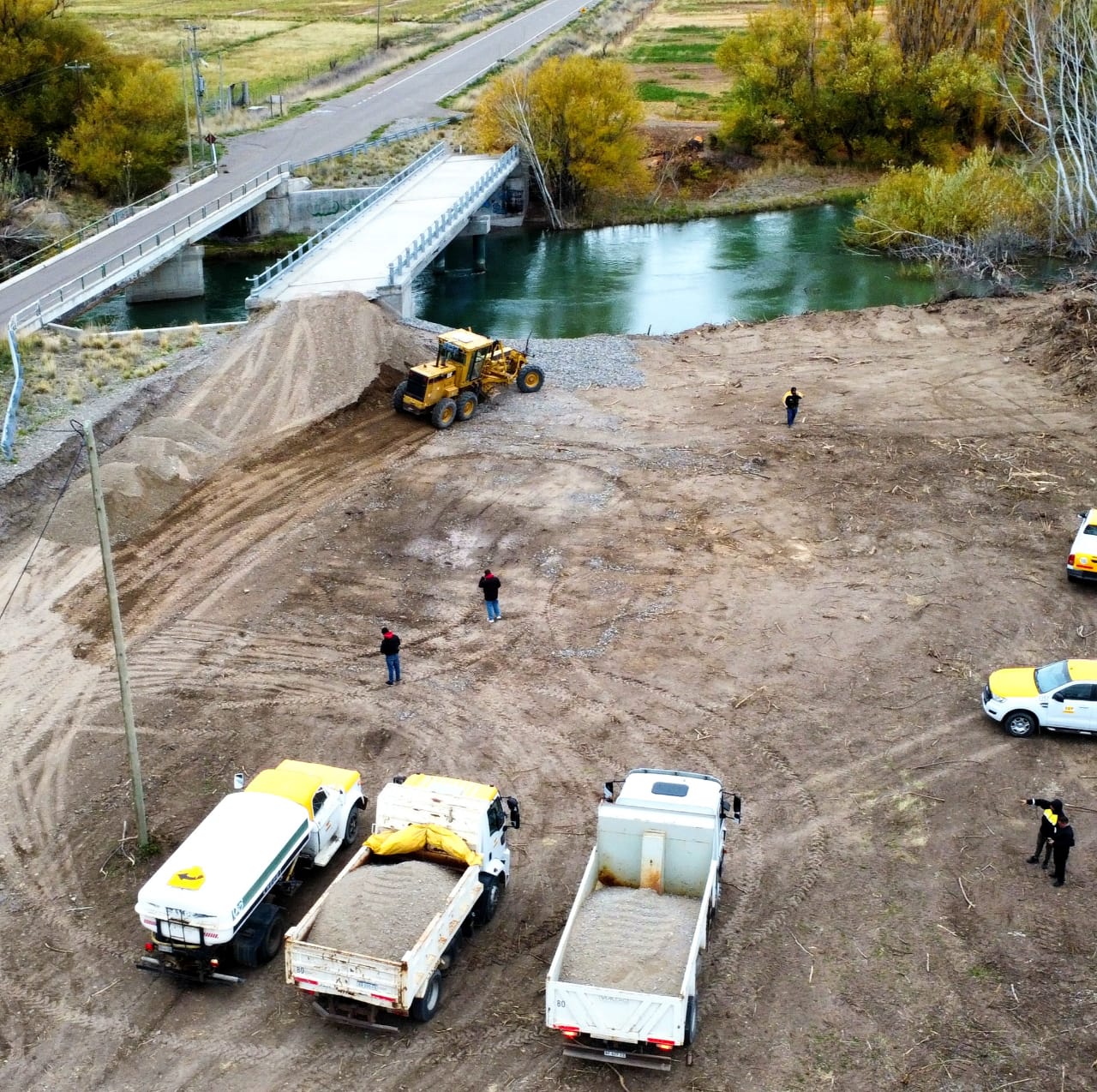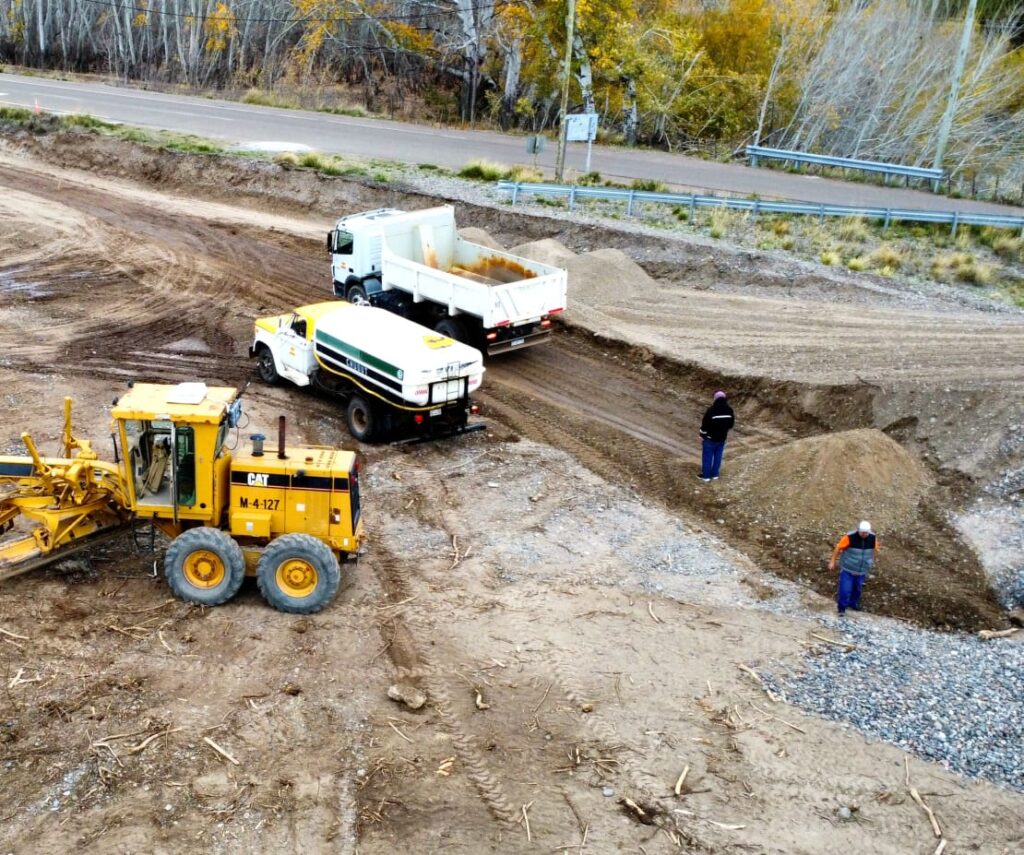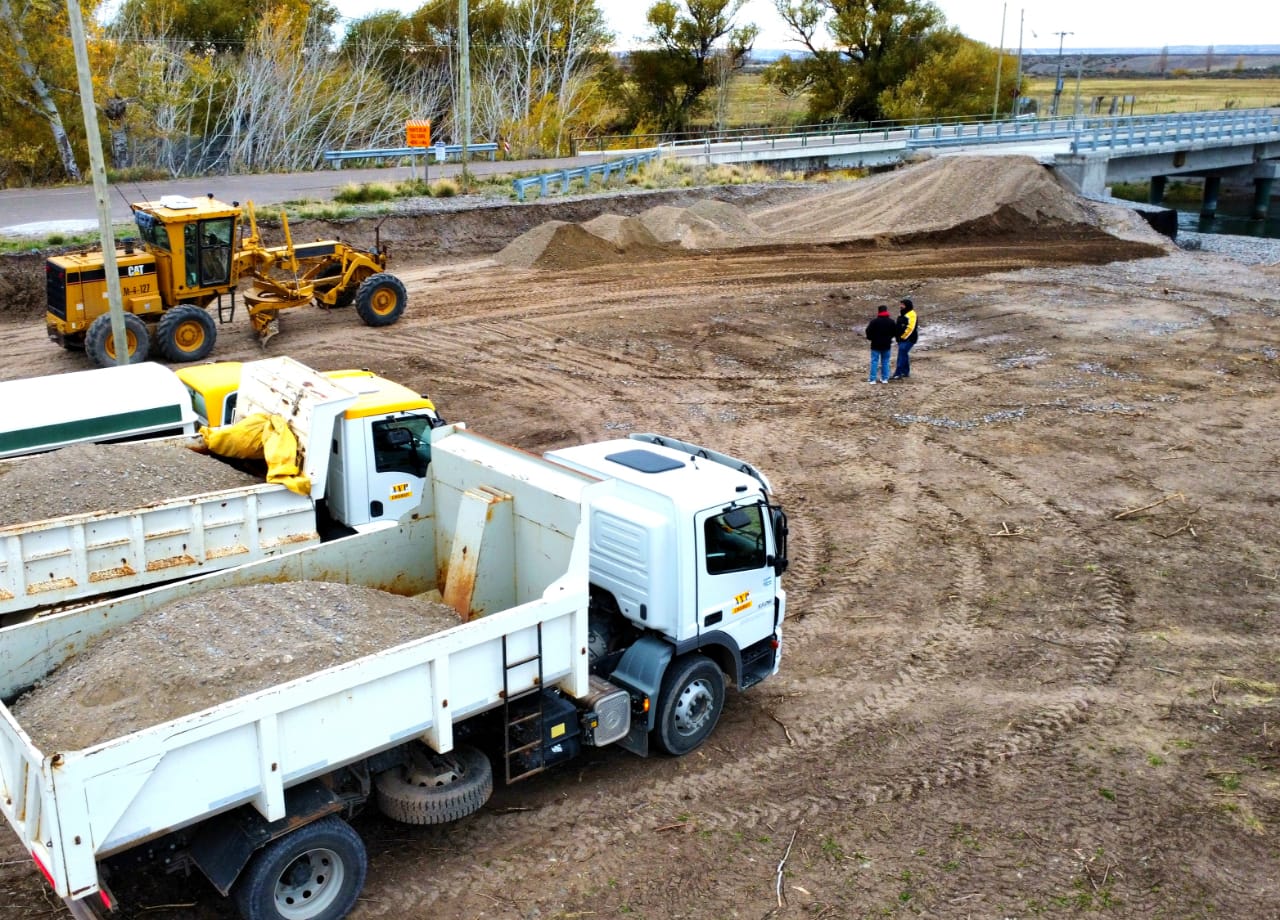 En principio, se realizó un desmalezamiento total y se comenzó con el movimiento de suelo y el traslado de ripio necesario. Además, se hicieron gaviones de contención para el caudal del río teniendo en cuenta alguna posible crecida extraordinaria.
