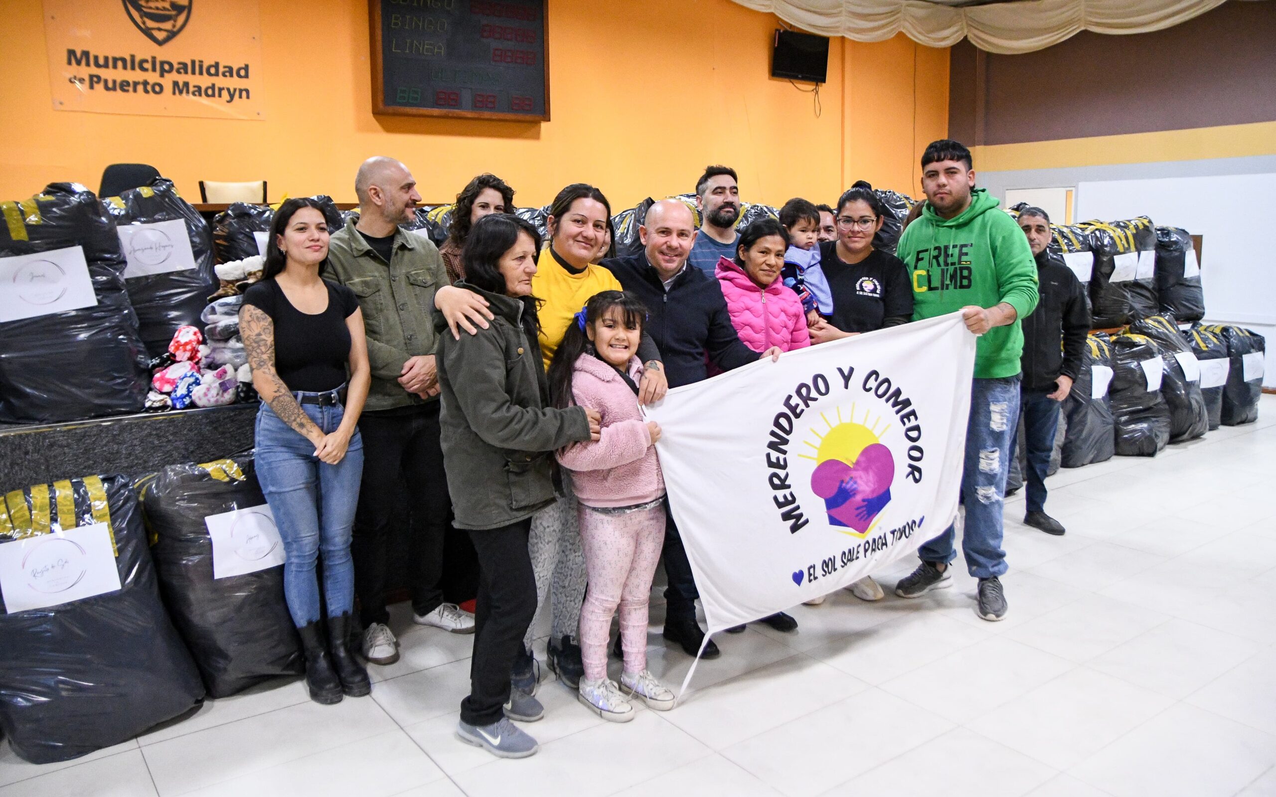En el acto que se llevó a cabo en el Bingo Municipal, el Intendente dijo: “En el marco de nuestro acompañamiento permanente y constante hacia los distintos espacios comunitarios de Puerto Madryn, llevamos a cabo una nueva acción concreta, realizando la entrega de una gran cantidad de indumentaria de invierno para que pueda ser utilizada por nuestros vecinos que más la necesiten”.