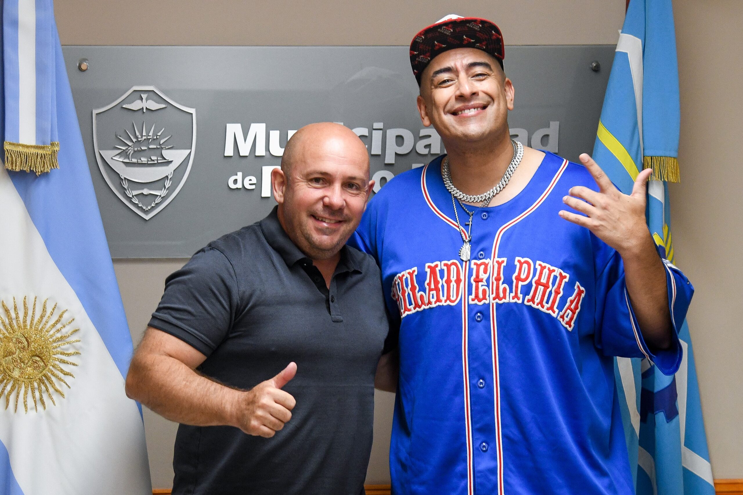 En el marco del acompañamiento permanente hacia los representantes culturales de nuestra ciudad, el intendente de Puerto Madryn, Gustavo Sastre, recibió en el Municipio a Javier Quinteros, cantante de la banda local “Los Dragones”, que se encuentra en un gran presente, brindando espectáculos en distintas partes del mundo.