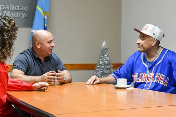 Al respecto, el Intendente dijo: “Recibimos en el Municipio a Javier Quinteros, cantante de la banda madrynense ‘Los Dragones’, a quien reconocimos por su trayectoria y los felicitamos por el gran trabajo que vienen realizando desde hace años, siendo embajadores culturales que representan de excelente manera a nuestra ciudad en distintas partes del mundo”.