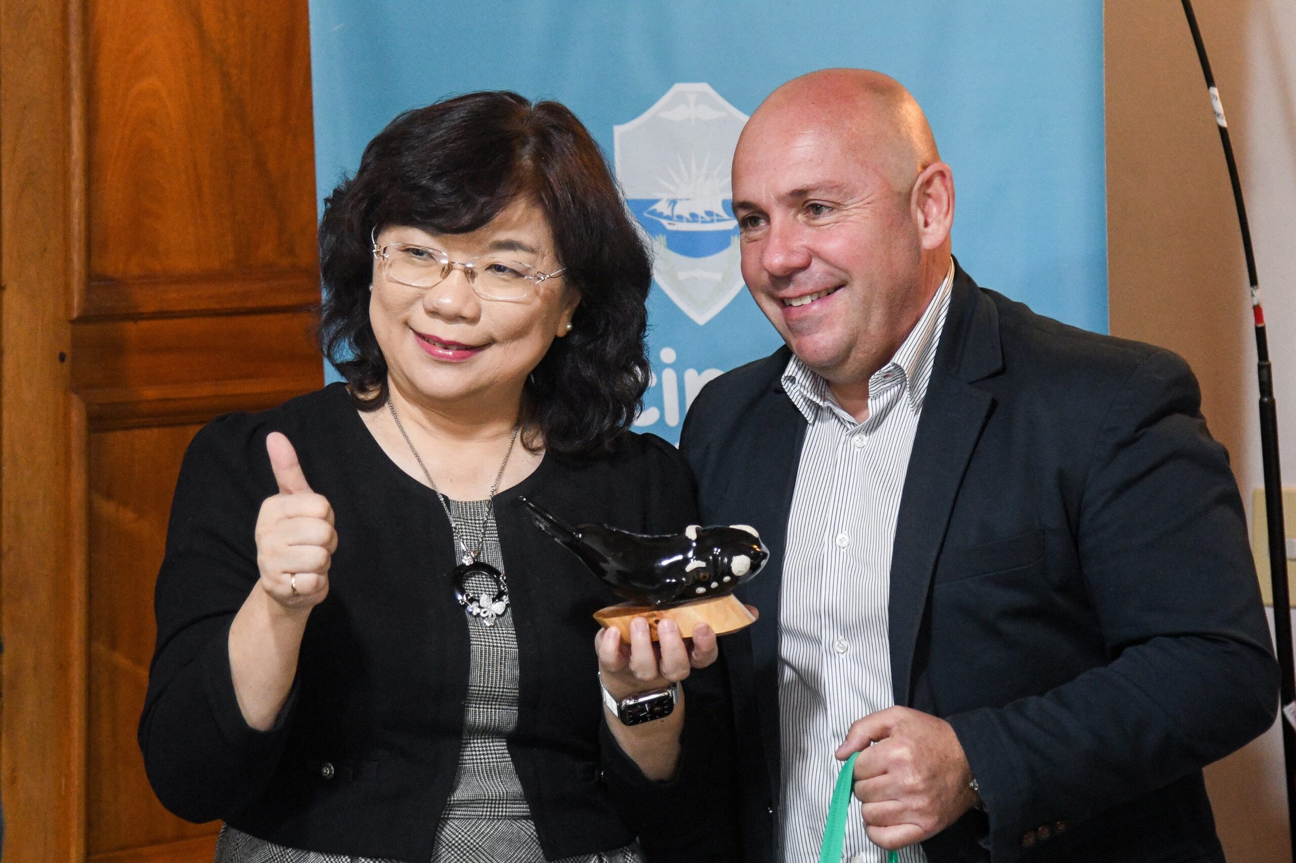 Al respecto, el Intendente dijo: “Hoy recibimos en Puerto Madryn a la embajadora de Taiwán, Florencia Miao-Hung Hsie, con quien nos reunimos junto a las autoridades de la Cámara de Industria, Comercio, Producción y Turismo y representantes de las industrias de pórfido, turismo, pesca y cerezas”.