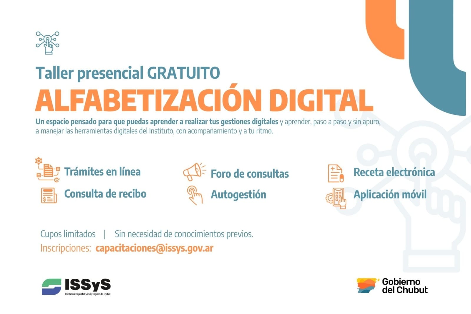 El Instituto de Seguridad Social y Seguros (ISSyS) brindó un nuevo taller gratuito de Alfabetización Digital en el Centro de Jubilados y Pensionados de la ciudad de Trelew, extendiendo así la oportunidad a afiliados y afiliadas para mejorar el manejo de las herramientas digitales con las que cuenta el organismo.