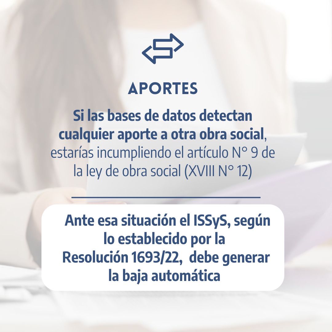 El Instituto de Seguridad Social y Seguros (ISSyS) prorrogará hasta fin de año el control de las afiliaciones de cónyuges y convivientes registrados en la obra social SEROS en el marco del cumplimiento de la Ley vigente del año 2015 que establece que no puede aceptarse la doble cobertura, normativa también vigente para afiliados PAMI.