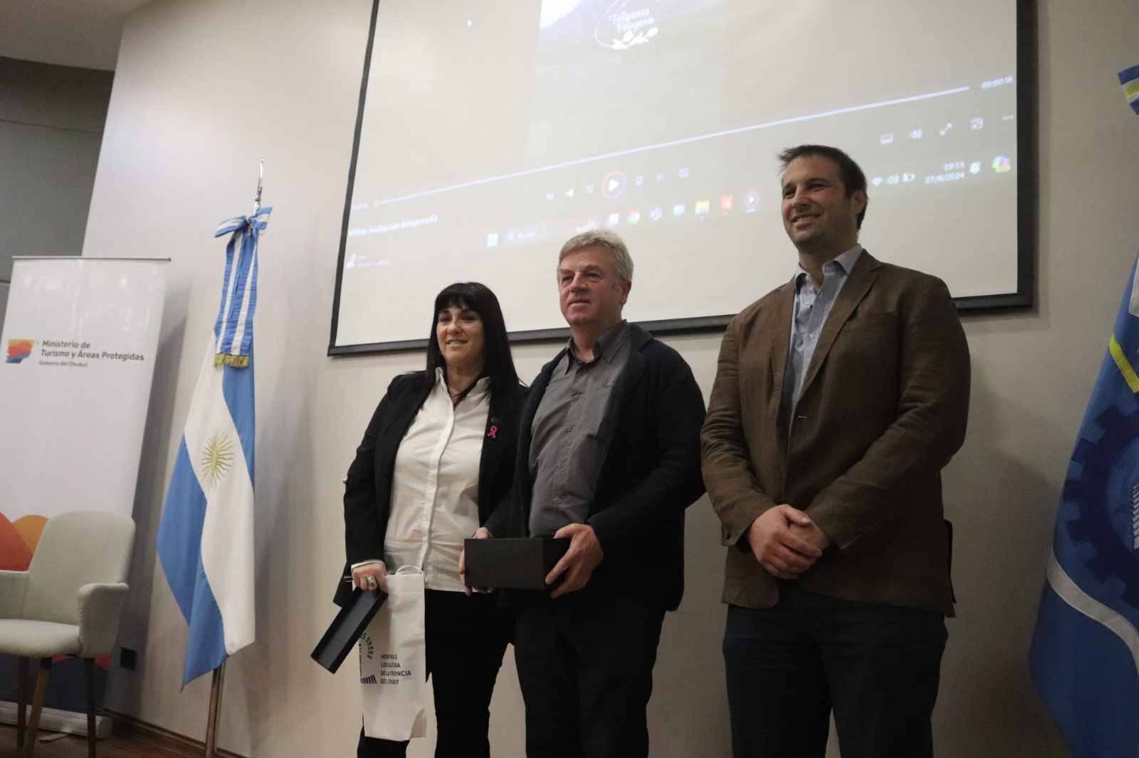 Leske recibió placas y regalos de reconocimiento no solo de parte de la cartera turística provincial, sino que también de la Legislatura, de la Cámara de Turismo de Chubut, y de la Federación Argentina de Empresas de Viajes y Turismo (FAEVYT).
