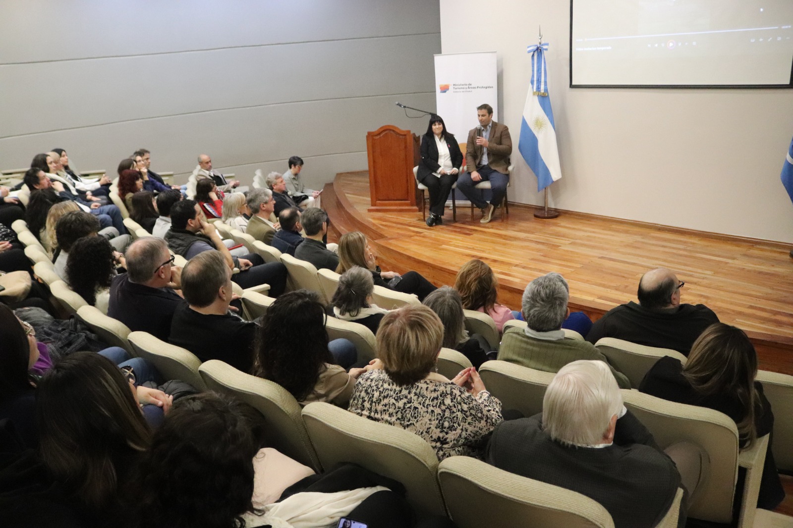 El evento fue encabezado por el ministro de Turismo y Áreas Protegidas del Chubut, Diego Lapenna, junto a la presidente de la Comisión Permanente de Turismo y Deportes de la Legislatura, Karina Otero; participando además funcionarios de la cartera turística, distintos diputados provinciales, así como también ex funcionarios del área como Enrique García y Cecilia Torrejón.