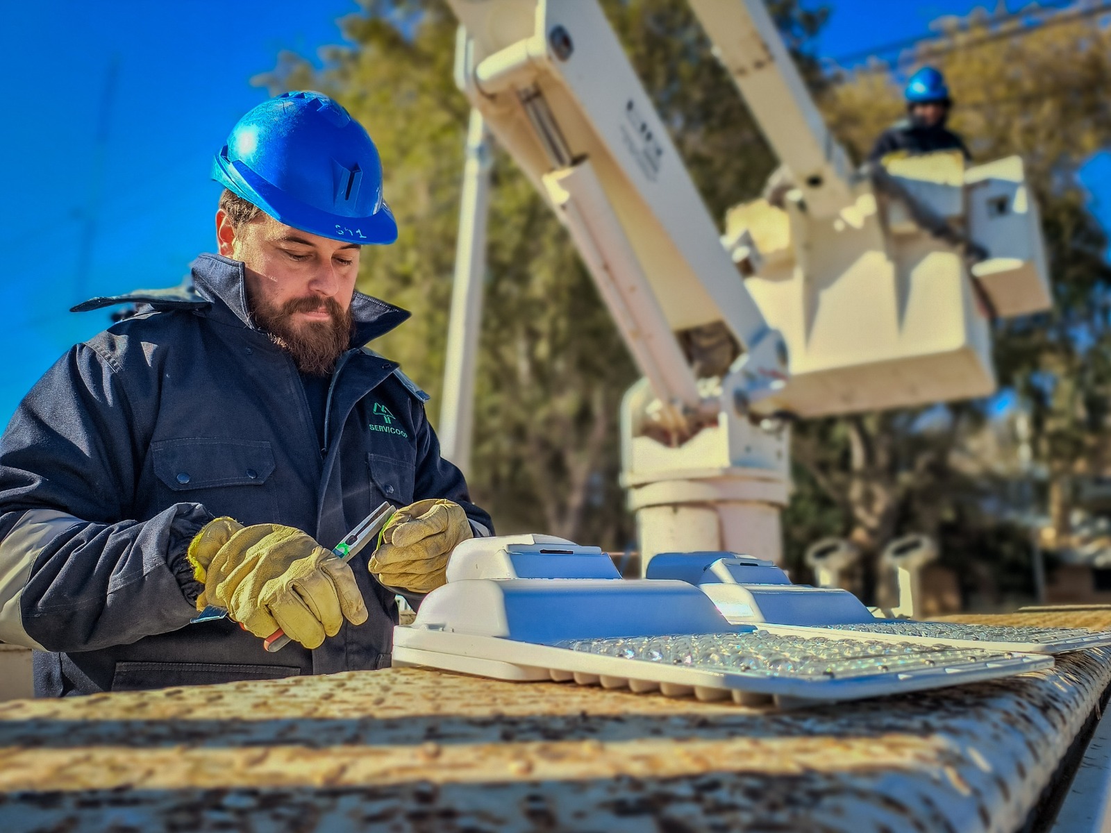 El servicio de alumbrado público es el responsable de atender más de 19.000 luminarias y 400 cajas de automatismo en la ciudad y en lo que va del año 2024 se han instalado más de 200 nuevas luminarias de tecnología led. Los artefactos led tienen entre sus beneficios, el aporte de mayor luminosidad, un menor consumo lo que acompaña a la política implementada de eficiencia energética y poseen una mayor vida útil, en comparación con los artefactos de sodio.