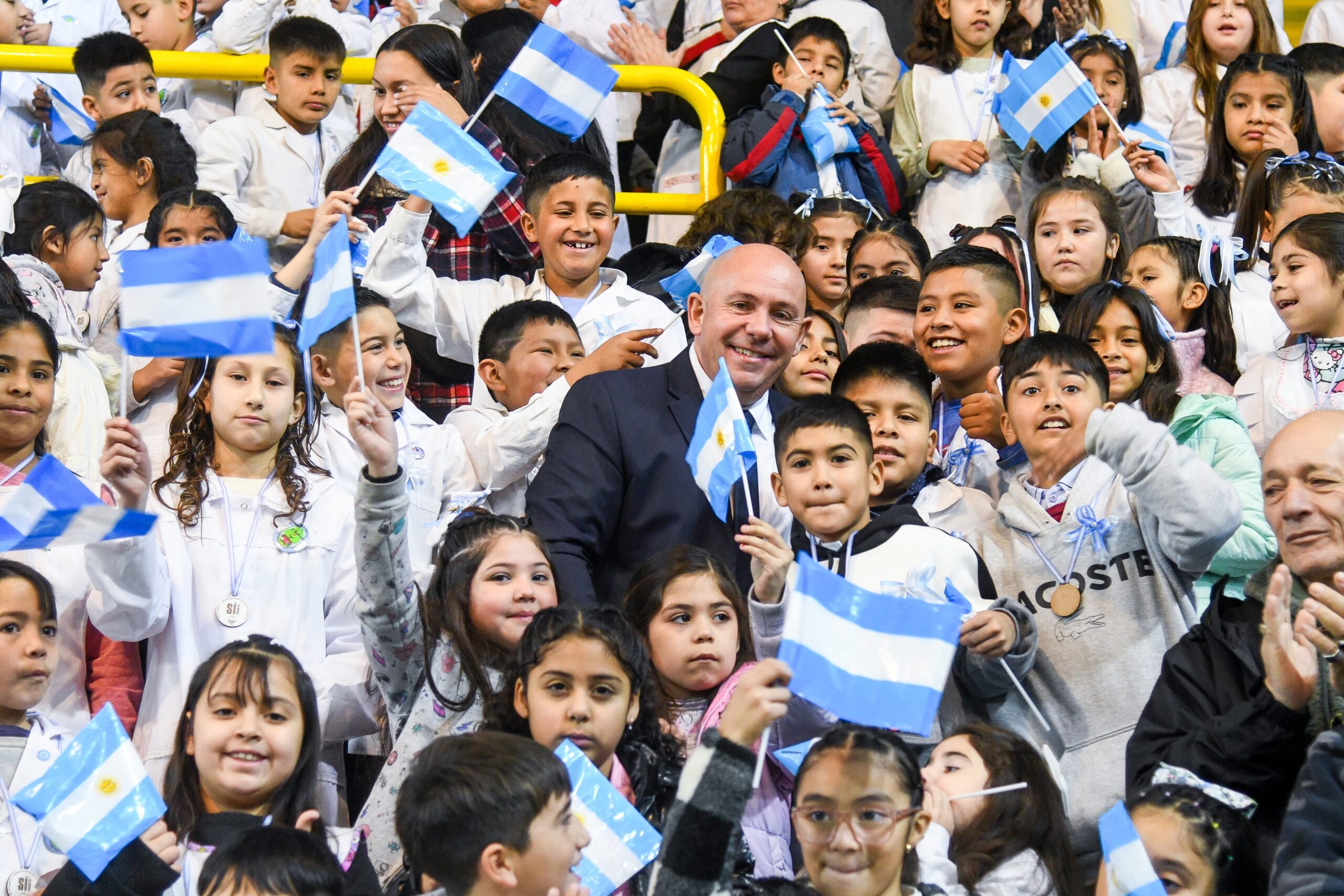“Hoy es uno de esos días en los que se llena el alma de emoción. Repaso una y mil veces esta misma frase que hace más de 40 años profesó mi señorita. Prometer lealtad a la Bandera Argentina, honrar a su creador, honrar este símbolo que nos acompaña desde el inicio de nuestras vidas, que nos envuelve en sus colores surgidos del cielo para que llegue al alma”, agregó.