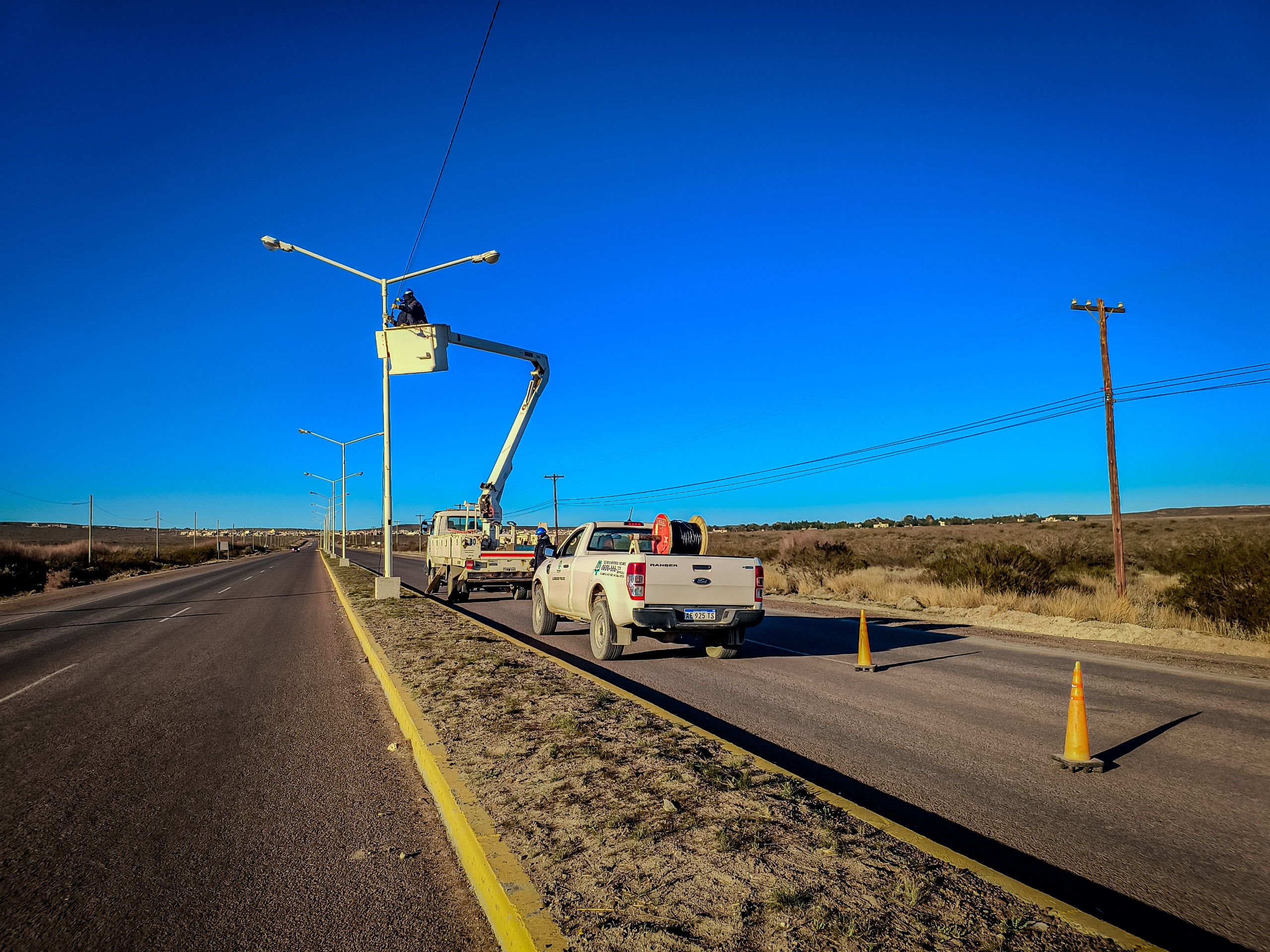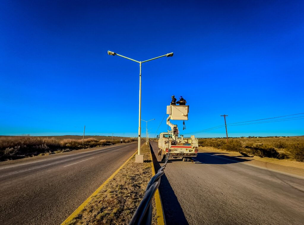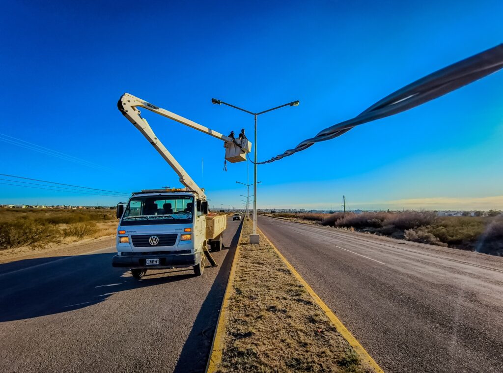 Nuestro personal de Alumbrado, finalizó el tendido del último tramo de nuevas redes de alumbrado, luego de fueran robadas, sobre Ruta N°1 camino a Solana de la Patagonia. Estas nuevas redes se consideran anti vandálicas, ya que su alma es de aluminio, lo que carece de valor de reventa en el mercado ilegal. Esta característica hace que este tipo de redes, no sean blancos de ataque por parte de los delincuentes.