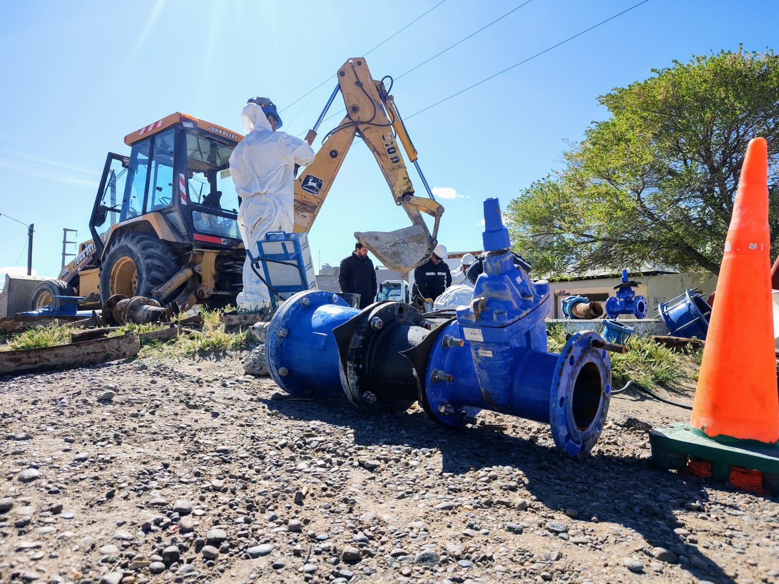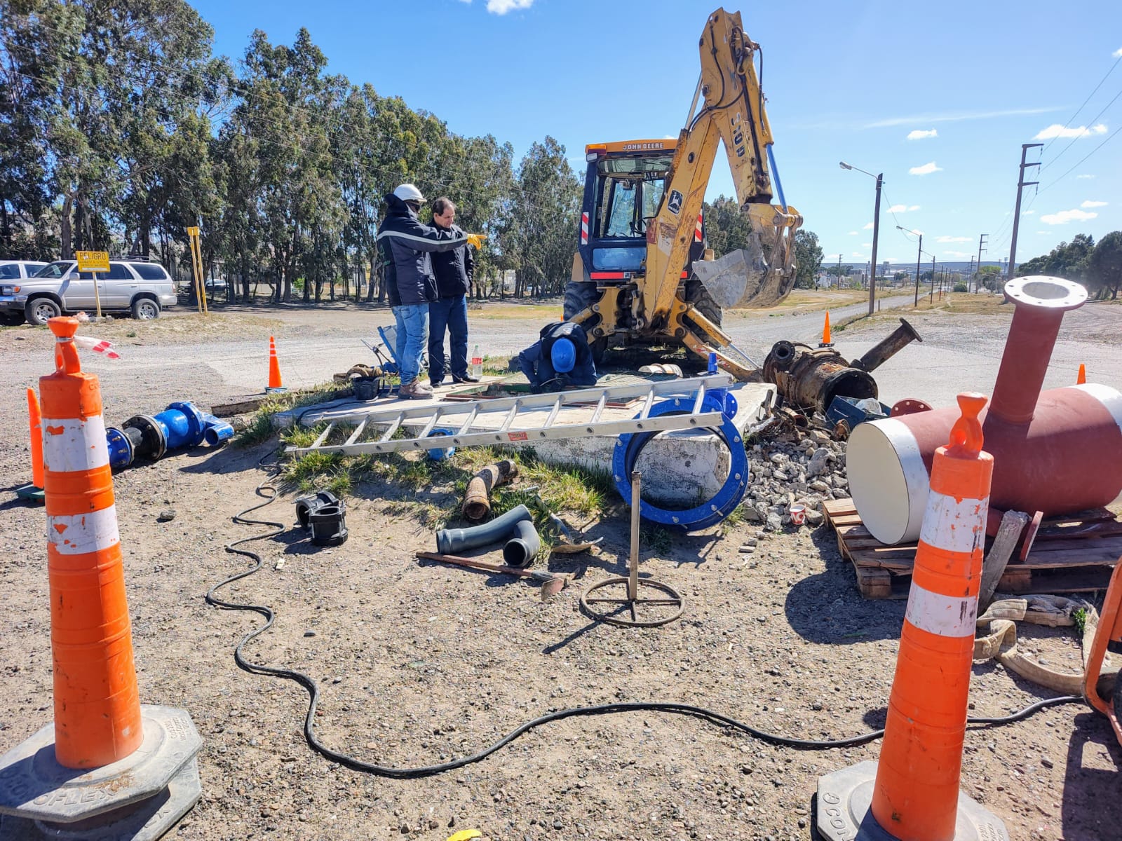 Nuestro personal de Agua y Saneamiento finalizó con éxito las obras de reemplazo de componentes de vinculación hidráulica, sobre el acueducto de 500 en inmediaciones de las calles Pedro Derbes y Juan XXIII. Este acueducto es de vital importancia para el abastecimiento de una zona extensa de nuestra ciudad y es el responsable de suministrar agua potable a los barrios Roca y Supervisores de Aluar y también a los parques liviano, agroforestal, pesado, conexo, pesquero y El Doradillo.