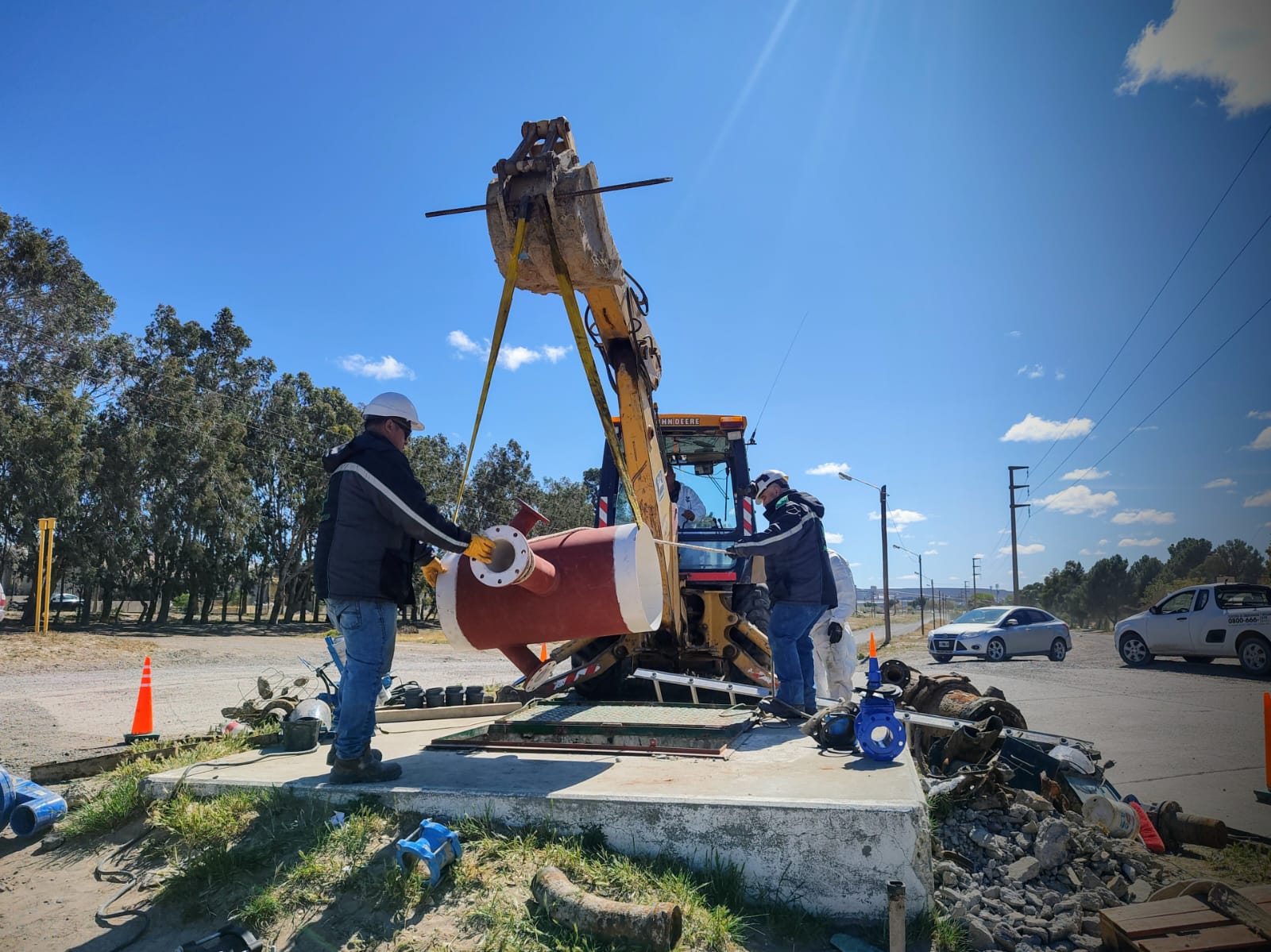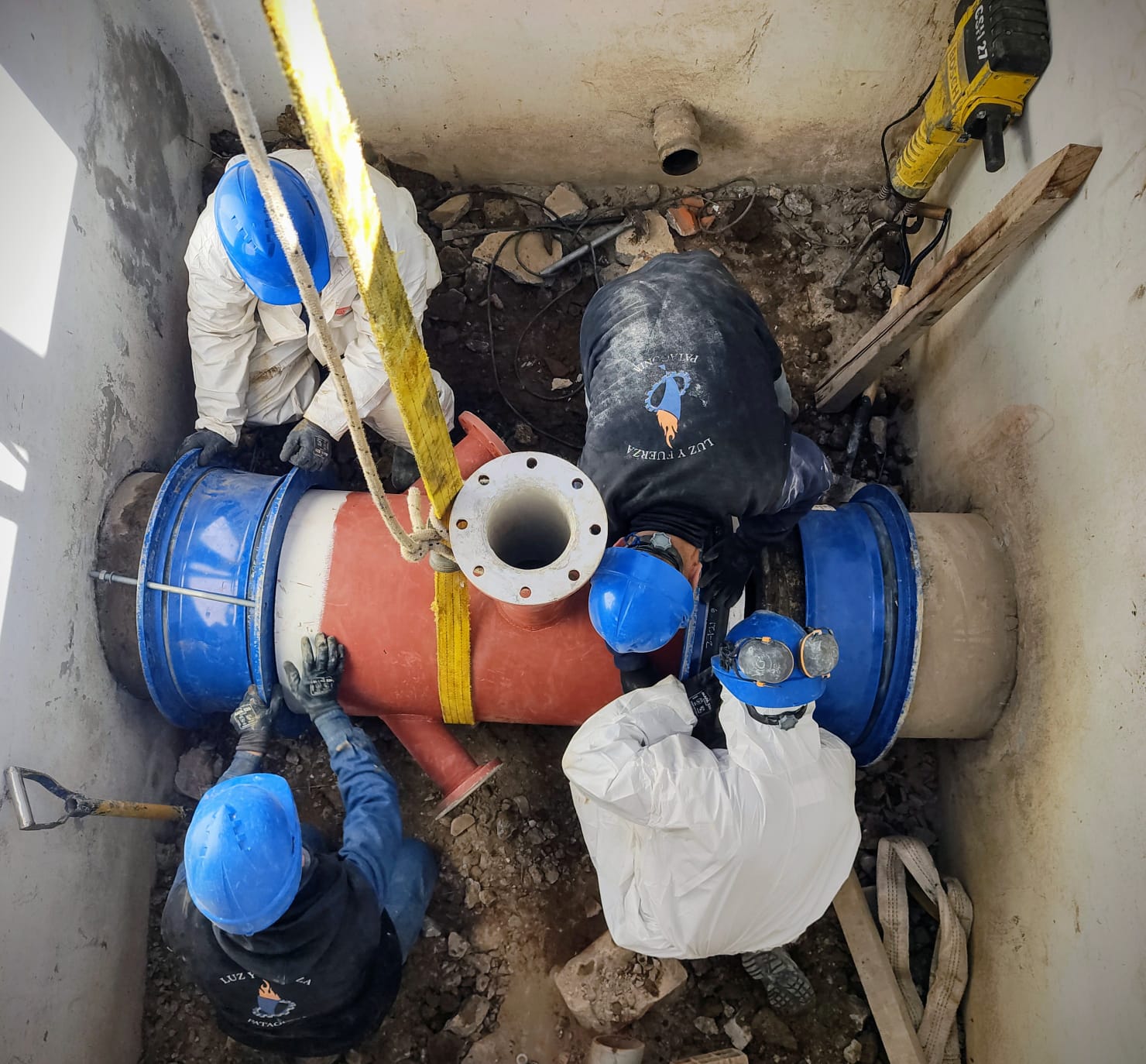 Luego de más de 7 horas de trabajo ininterrumpido nuestro personal logró con éxito el montaje de la nueva pieza fabricada a medida y los componentes de vinculación, válvulas esclusas y válvulas de aire que componen a la cámara ubicada en Pedro Derbes y Juan XXIII. Estas instalaciones ya cumplieron con su vida útil y debían ser reemplazadas de forma urgente, antes de la llegada de la temporada estival, puesto que durante los meses de verano, los acueductos funcionan a su máxima capacidad y está cámara no podía resistir ese régimen de trabajo.