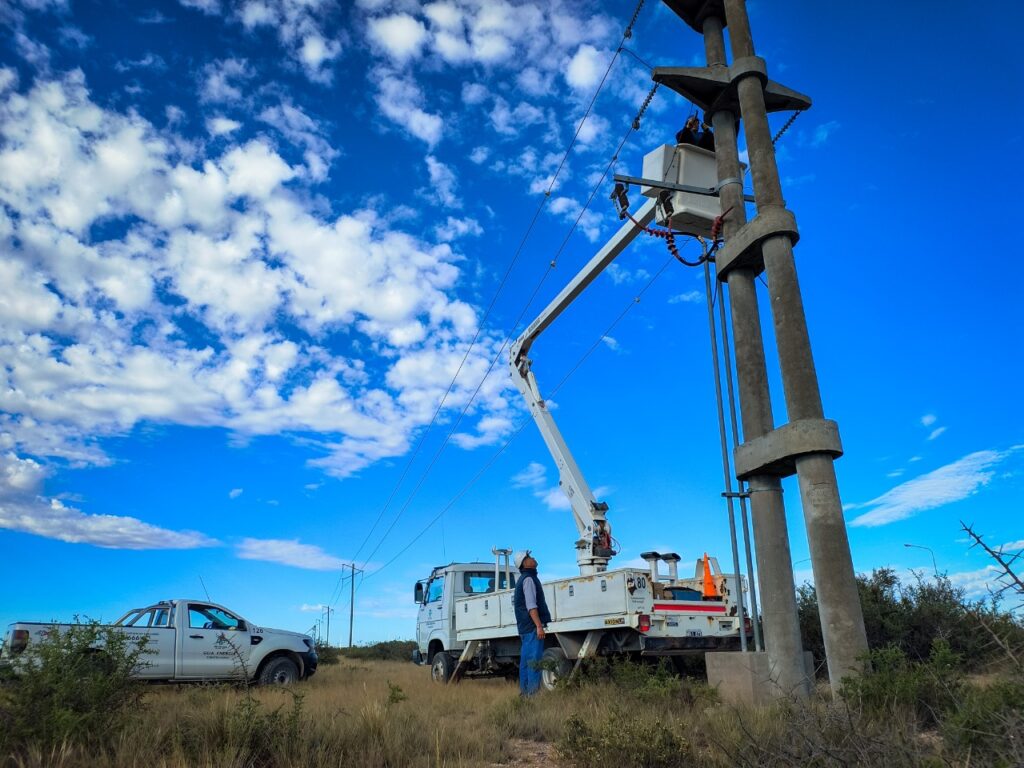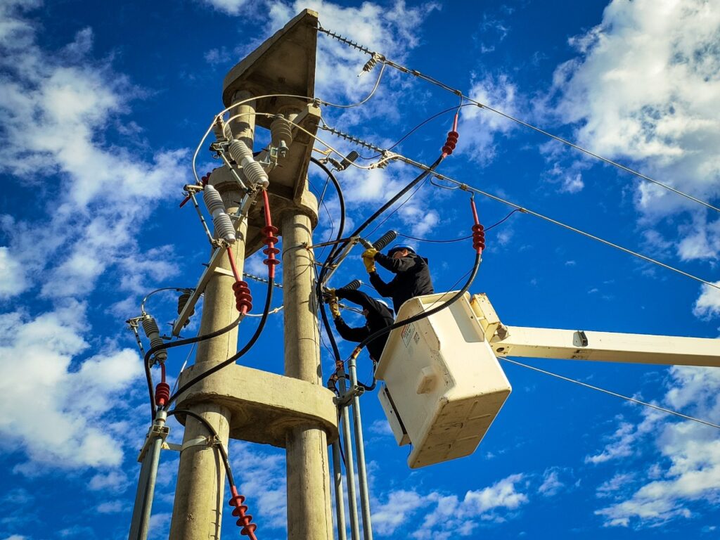 Durante el operativo de trabajo, se ejecutó la instalación de cuatro nuevos descargadores de sobretensión para media tensión y se llevó adelante el recambio de más de diez aisladores de media tensión.