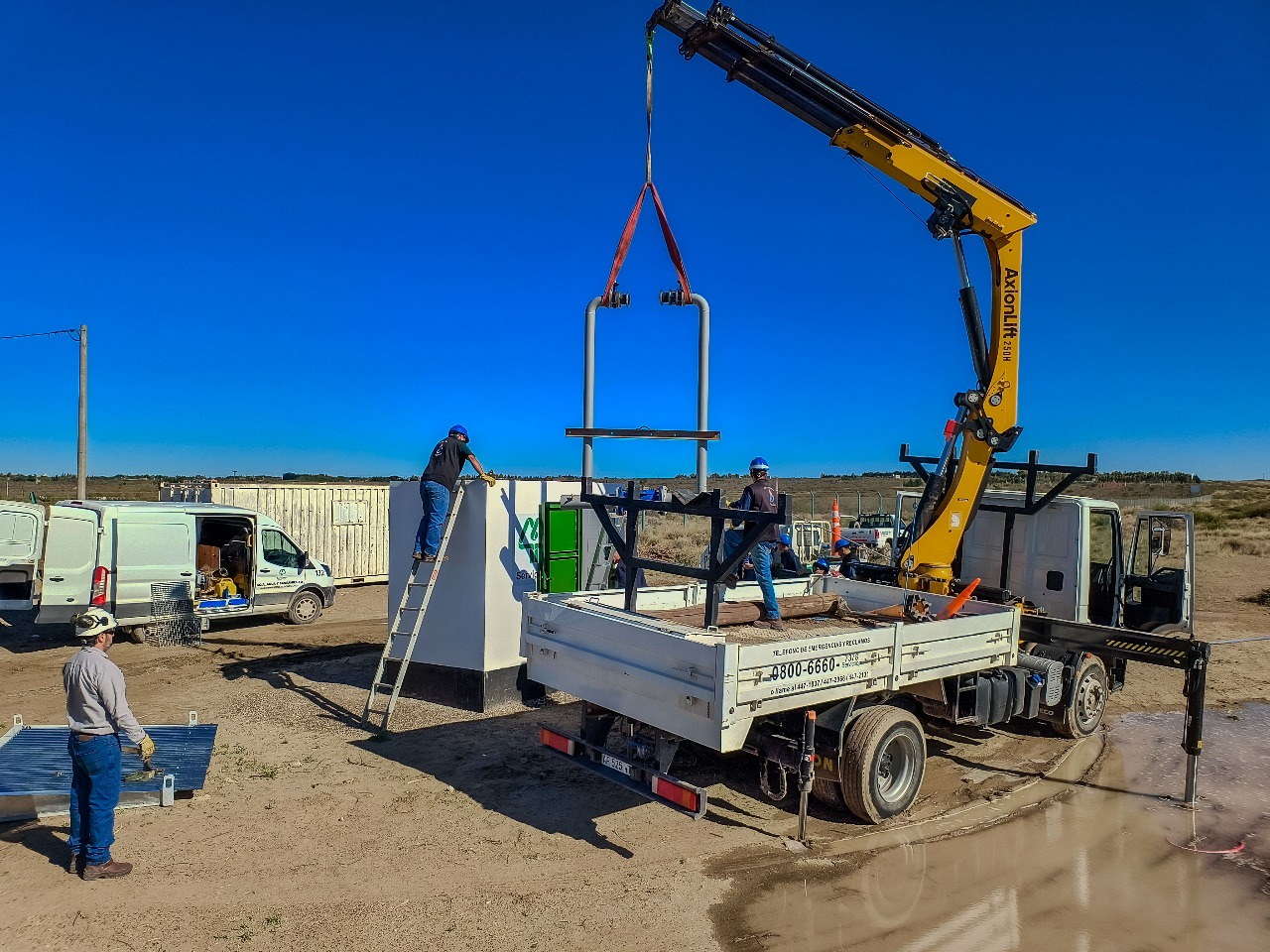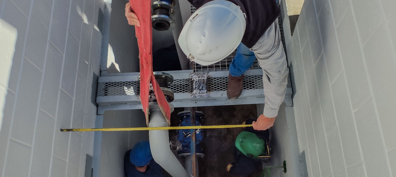 Nuestro personal finalizó con la primera etapa de la obra, para la nueva estación de repotenciación en El Doradillo. El día de hoy se llevó adelante el montaje del manifold y los componentes hidráulicos sobre el acueducto. El servicio quedó normalizado a las 12:30 horas.