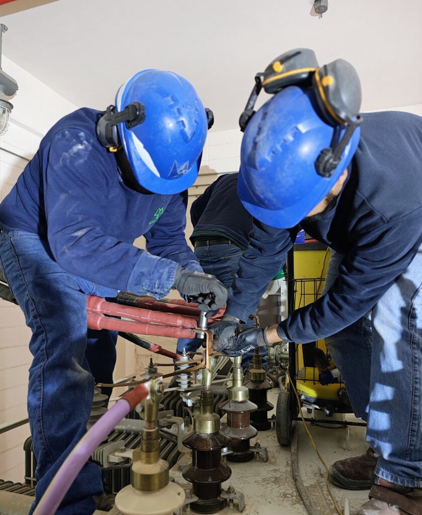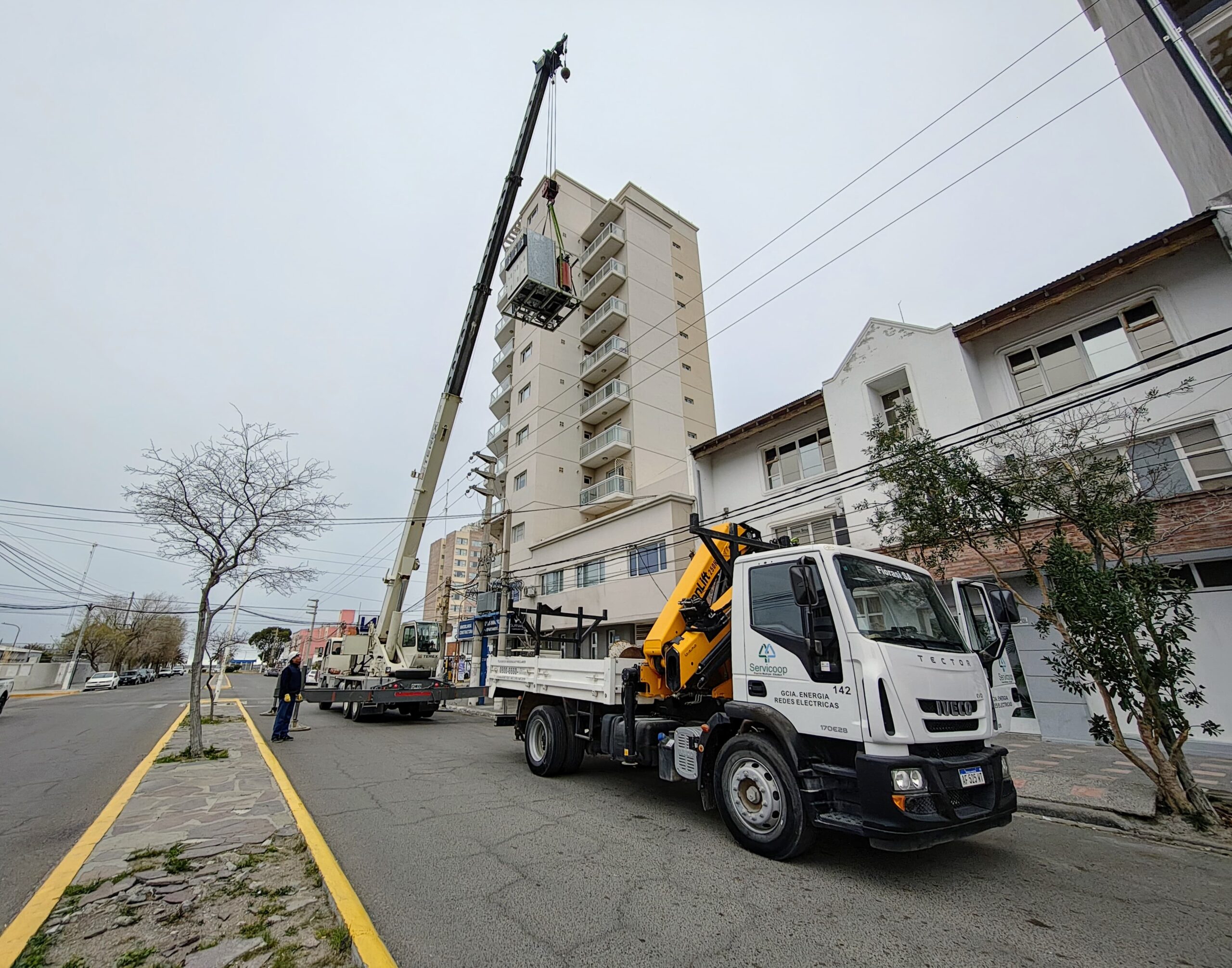 Un equipo ejecutó el reemplazo de postes de madera que ya cumplieron su vida útil. También se realizó el retiro de un transformador y perfilería en la zona céntrica, debido al ingreso al sistema de las nuevas redes subterráneas. En simultáneo otras dos cuadrillas llevaron adelante chequeos y mantenimientos sobre infraestructura y transformadores de las Estaciones Transformadoras: «Debes» y «Centro».